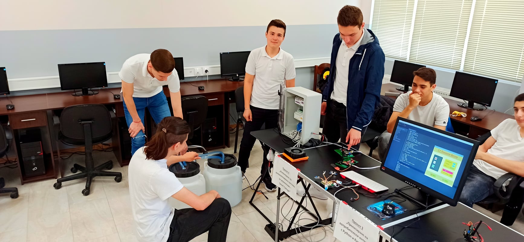 Учениците от IX, X и XI клас от паралелка „Системен програмист“ представят проекти за надграждане на знанията си по обектно ориентирано програмиране. Три от проектите са свързани с предметите, които изучават, като по този начин надграждат придобитите знания през годината. Те са практически ориентирани, тъй като чрез тях учениците усвояват по-лесно тънкостите на програмирането и виждат реалното приложение на предметите, които изучават. Единият от проектите е за визуализиране на данни от сензори. Вторият представлява разработен от учениците уебсървър за видеонаблюдение, а третият създава интерфейс за връзка между хардуер и софтуер. Учениците представят и проект на клуб „Роботи“ за изграждане на автоматизирана система за управление на вила.