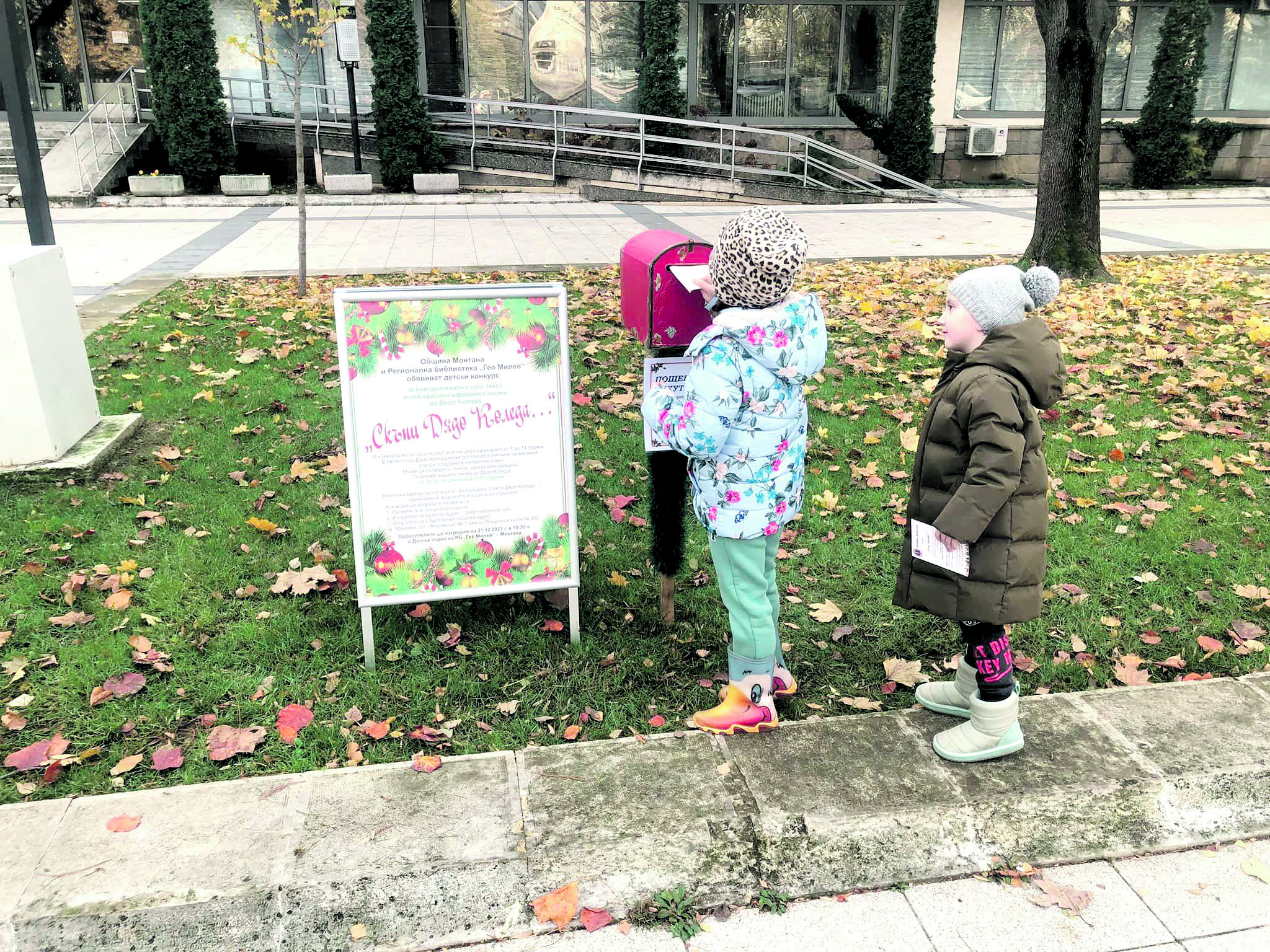 Регионалната библиотека „Гео Милев“ в Монтана обявява конкурс за най-оригинално написано и добре илюстрирано писмо до Дядо Коледа. В конкурса могат да се включат всички деца на възраст от 1 до 14 години от цяла България. В писмото си до добрия старец те могат да посочат личните си предпочитания за подарък, пожеланията си за настъпващата 2024 г. или пък да поздравят свой близък човек.