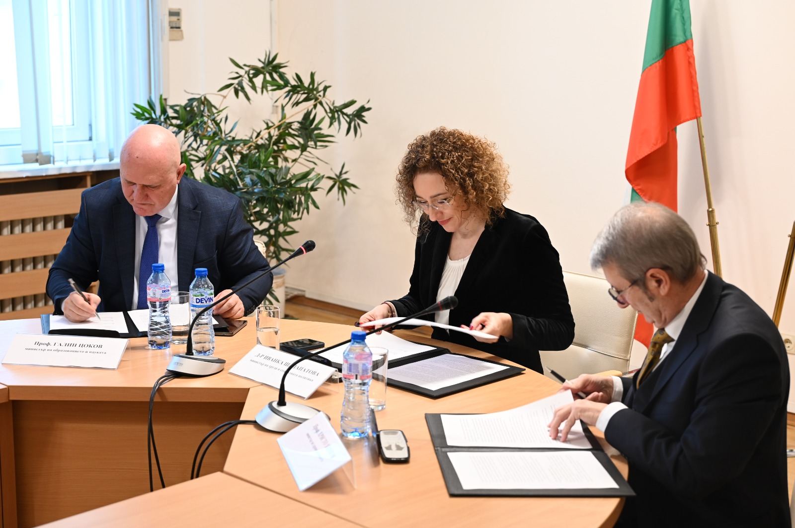 Споразумение за сътрудничество между Министерството на образованието и науката, Министерството на труда и социалната политика и Министерството на здравеопазването при предоставянето на подкрепа за личностно развитие на деца и ученици със специални образователни потребности и с хронични заболявания подписаха тримата ресорни министри проф. Галин Цоков, д-р Иванка Шалапатова и проф. Христо Хинков. Документът ще осигури координацията и взаимодействието между експертите от регионалните центрове за подкрепа на приобщаващото образование, регионалните здравни инспекции и дирекциите „Социално подпомагане“ при оценяването на индивидуалните потребности на децата и изпълнението на комплексни образователни, здравни и социални мерки с цел гарантиране на цялостна и качествена подкрепа.