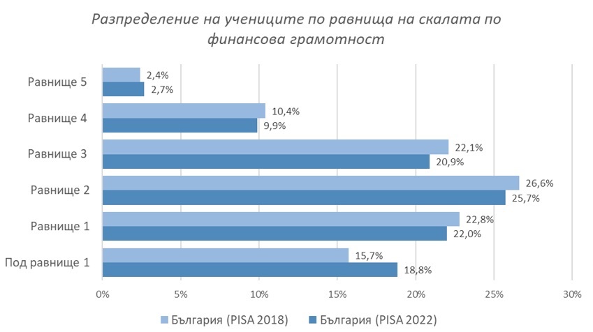 От тях 2,7% покриват най-високото равнище – пето. Техният процент се увеличава спрямо резултатите от предходното изследване на финансовата грамотност от 2018 г.
