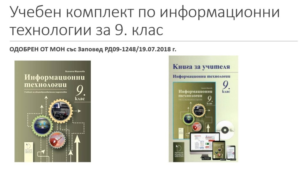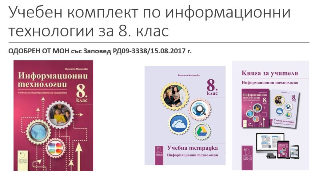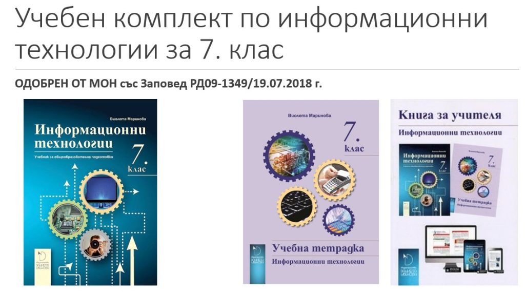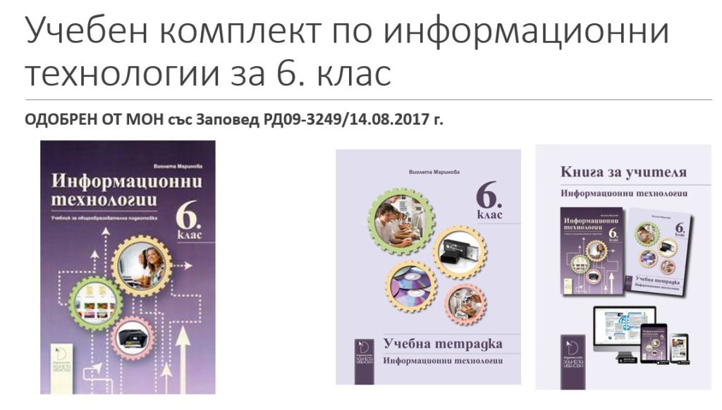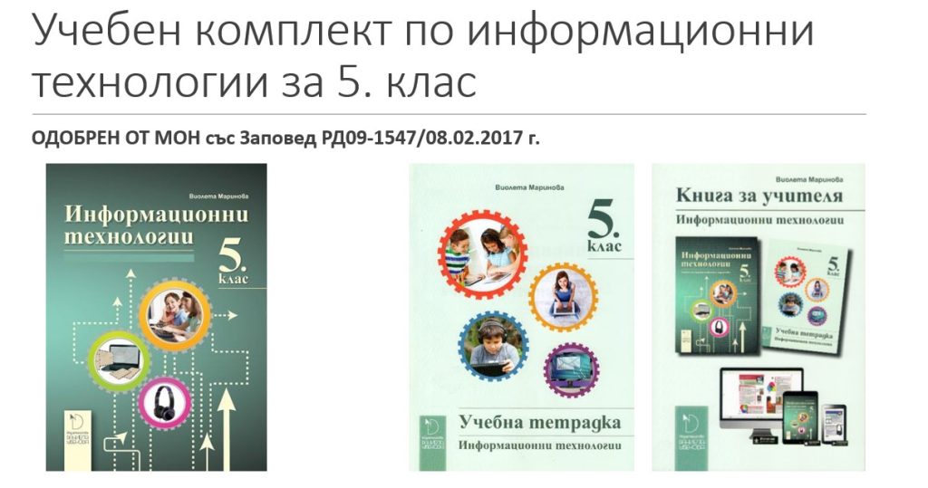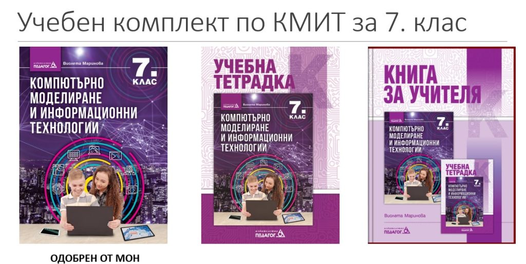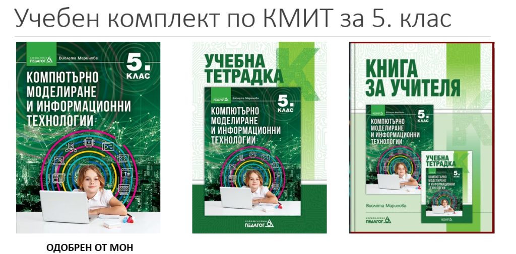 Също така е автор и на учебни комплекти по компютърно моделиране и информационни технологии за V, VI, VII клас, които са разработени по действащата учебна програма и могат да се ползват в системата на предучилищното и училищното образование.