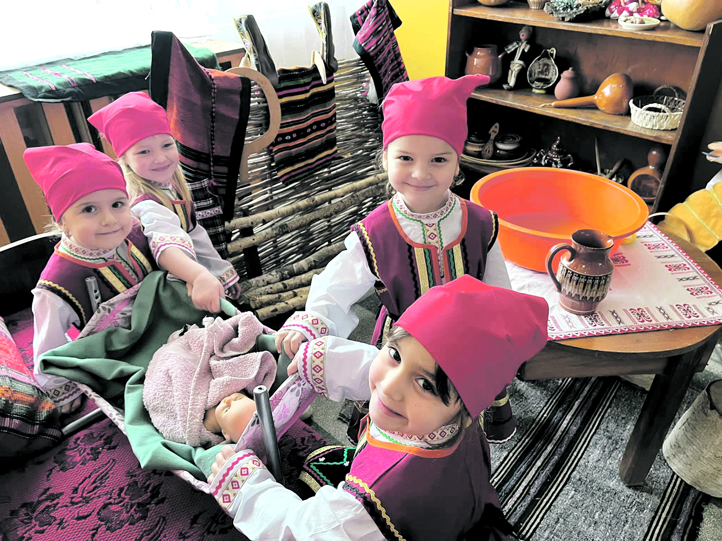 Традициите оживяват в Детска градина „Мир“ в село Селановци, област Враца. С много любопитство и интерес малчуганите пресъздават Бабинден и традиционния български обичай „Бабуване“ Снимка ДГ „Мир“ – с. Селановци
