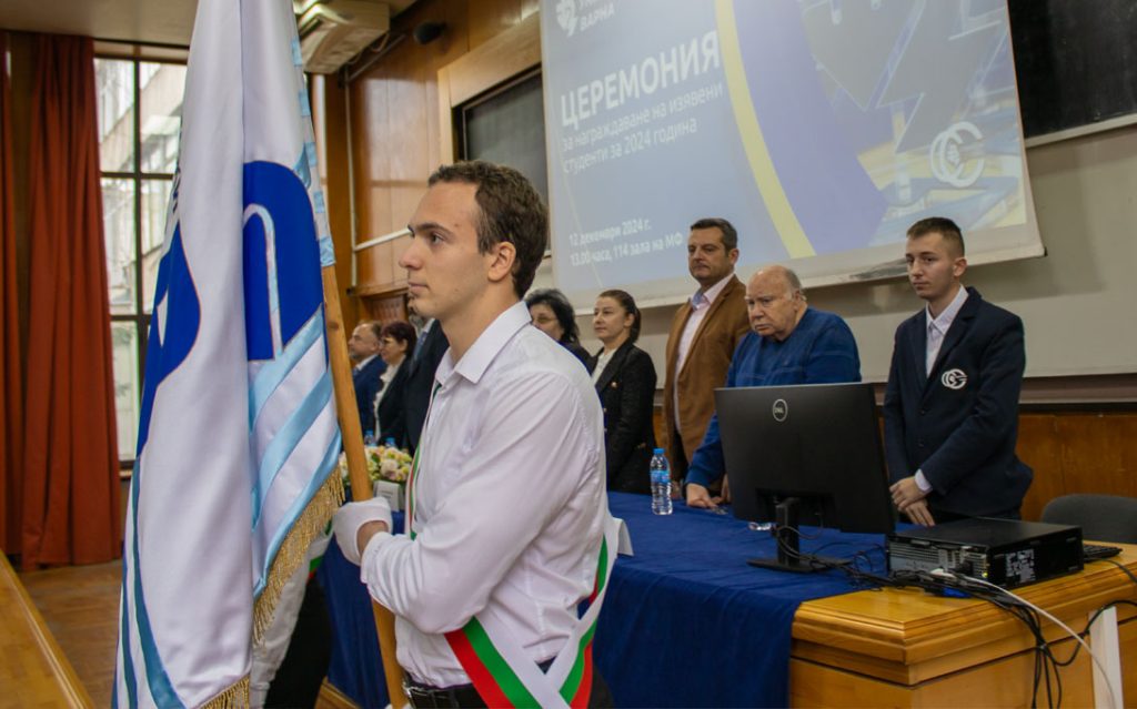 Грамоти, плакети и парични награди получават още 18 студенти, пълни отличници за учебната 2023/2024 г., заели призови места на национални състезания и научни форуми, както и на пълни отличници за целия период на обучение.