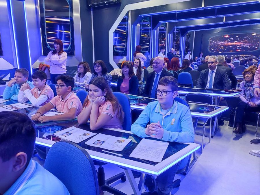 Учениците от VГ клас, които изучават като допълнителна подготовка иновативния предмет „Космически науки“, в условията на виртуална среда генерираха изображения с помощта на изкуствен интелект в присъствието на служебния министър на образованието проф. Галин Цоков, който бе гост на открития урок.