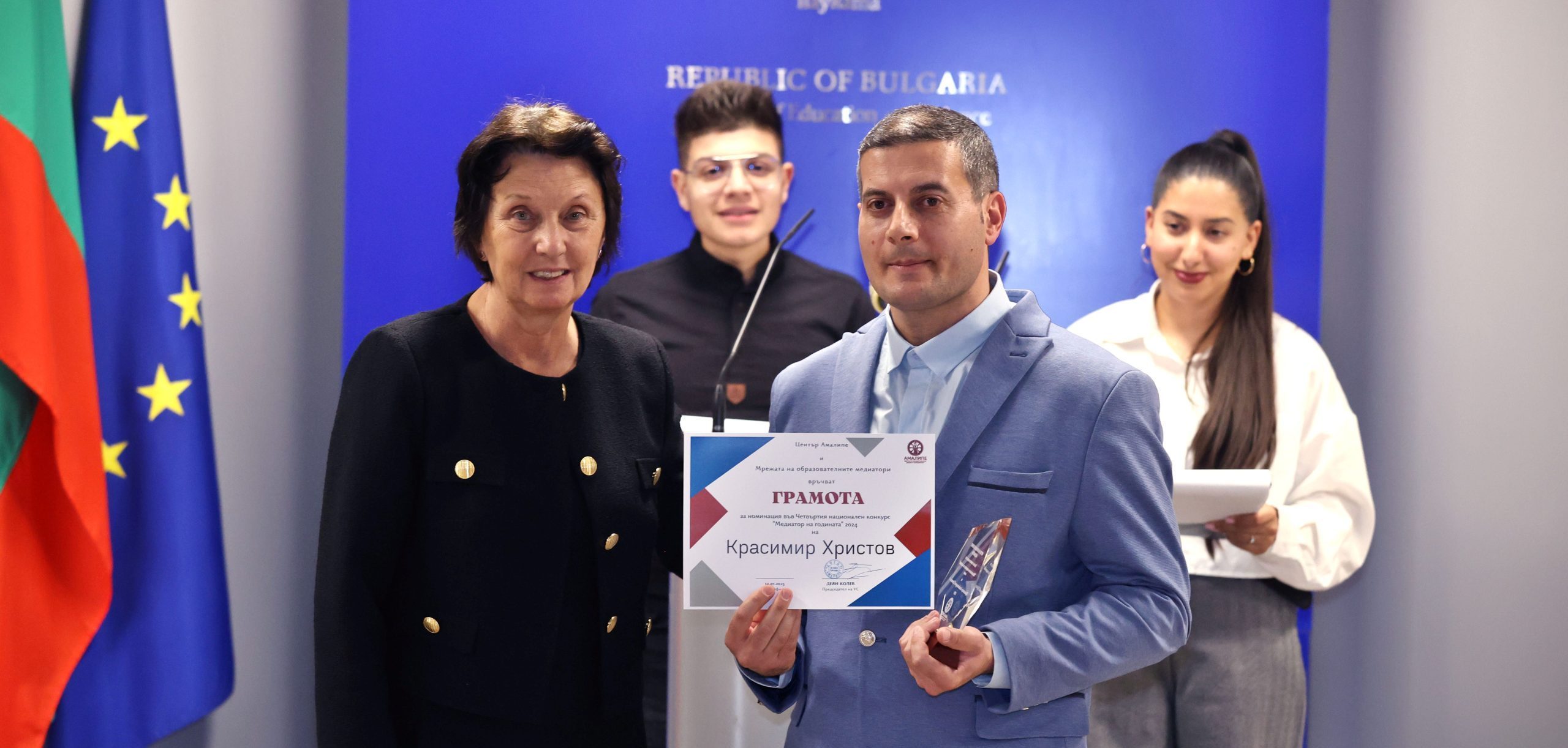 Заместник-министърът на образованието и науката д-р Емилия Лазарова връчи наградата на Красимир Христов