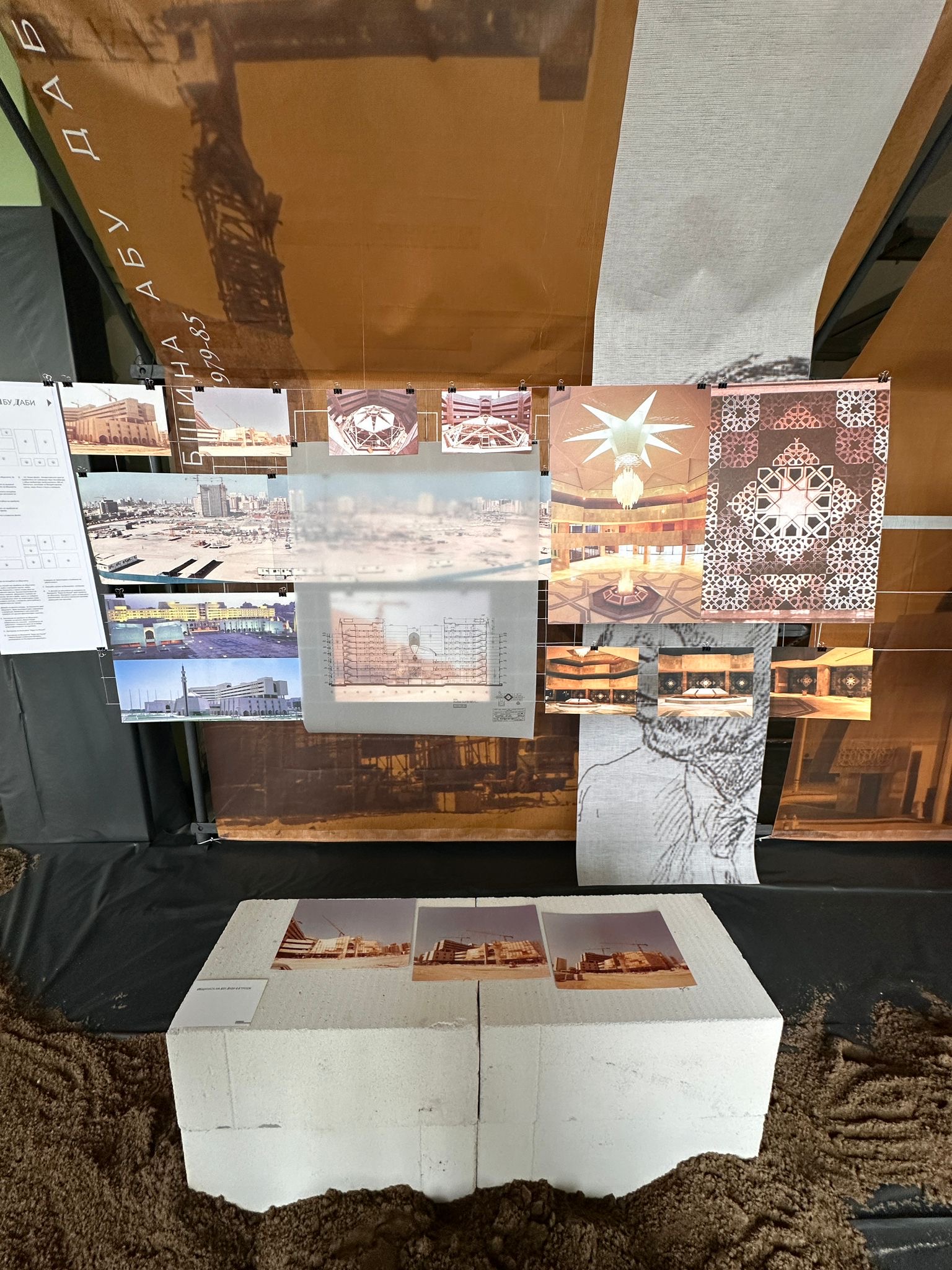 Арх. Ани Дошева допълва: „Експозиционният дизайн подпомага изложбата да не се ограничава до представяне на текстова информация, а да разкаже истории чрез пространствени ситуации и многопластова материална атмосфера. Имайки предвид бързо развиващата се градска среда на Абу Даби през 70-те и 80-те години на миналия век с фокус върху вертикални конструкции, сгради като Главния автобусен терминал са сред редките случаи на предимно хоризонтално разпределение. Целта беше да внесем именно това усещане и в изложбеното пространство. Много подходящата зала на център „Кристо и Жан-Клод“ беше ключов фактор да пресъздадем не само теоретично и визуално историите, но и техните архитектурни качества“.