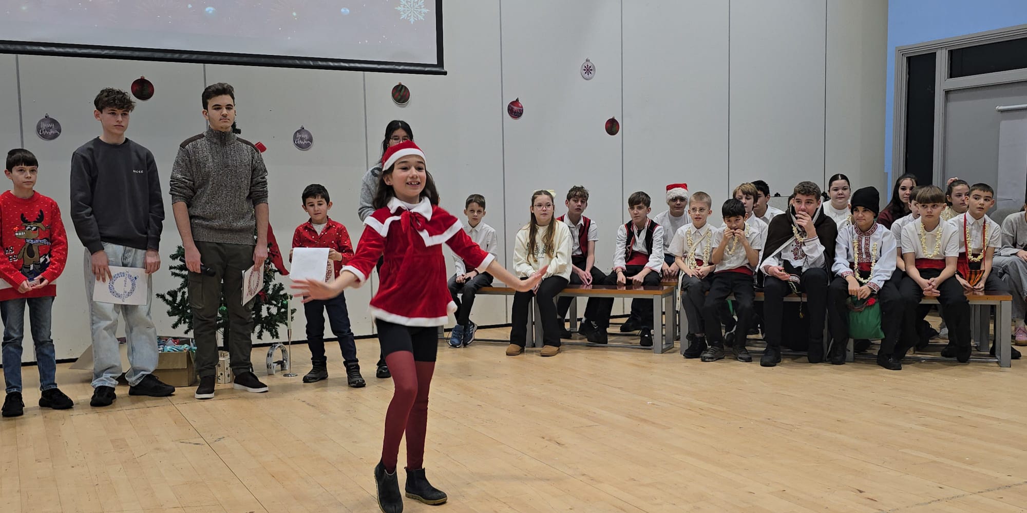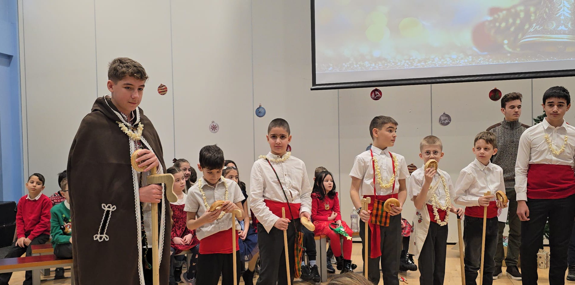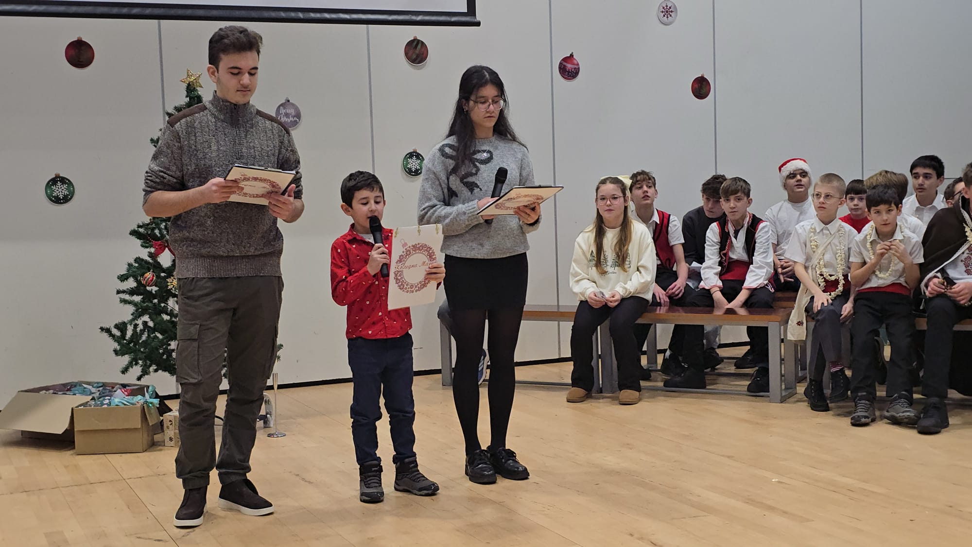 Вълнуващо е и пресъздаването на обичая коледуване. Учениците се докосват до българските традиции, облечени в празнични носии, и с коледарски песни и наричания носят радост и благословия.