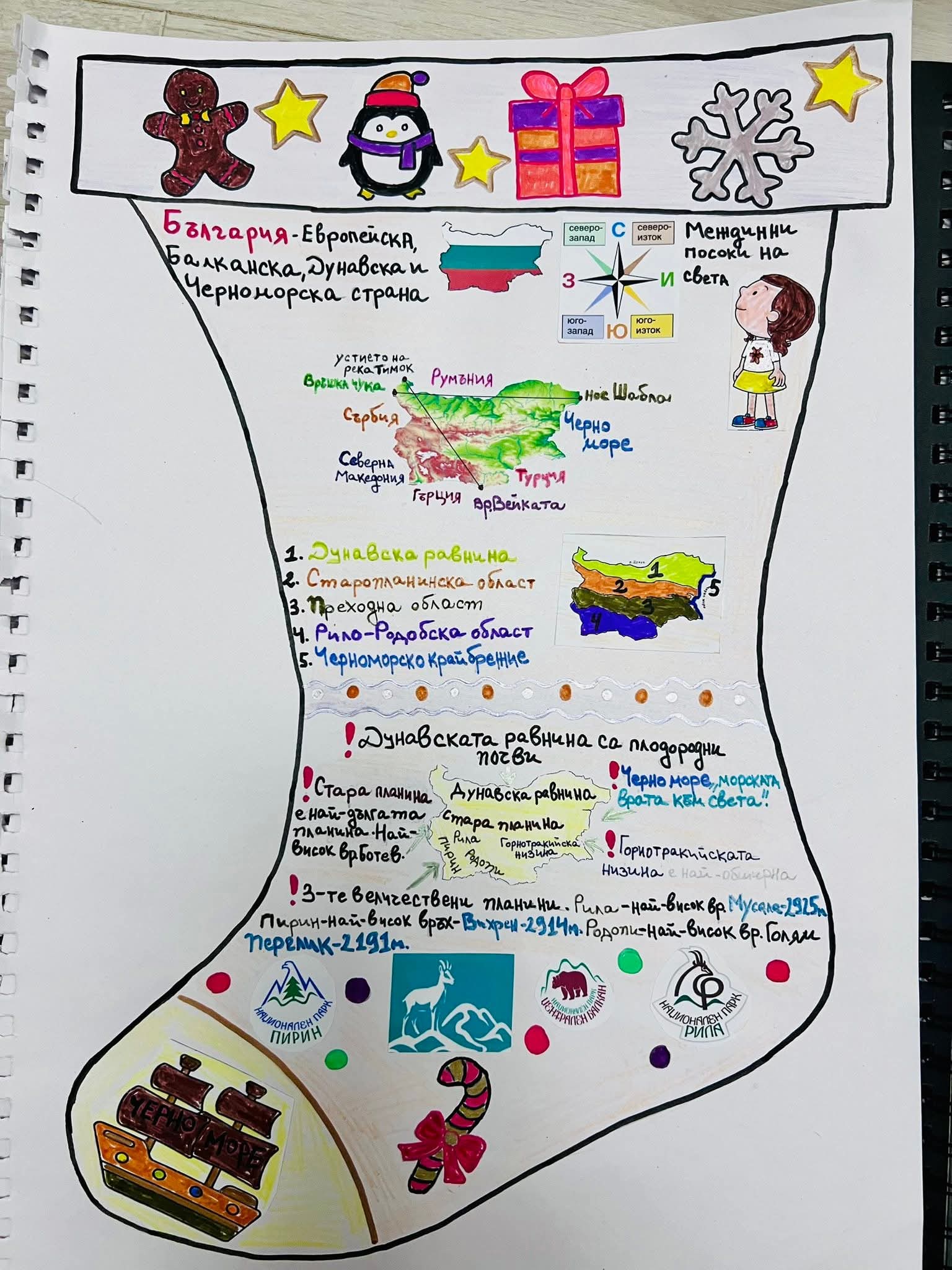Учениците от V и VI клас подобряват познанията си за ключови понятия, факти, карти, символи и изображения, които представят наученото по география на България, и ги слагат в специално изработен коледен чорап. Проектите включват рисунки, надписи, снимки, цветни елементи и коледна украса. „Това превърна всеки чорап в уникално креативно и смислено изделие. По този начин ученето излезе извън рамките на учебника и се превърна в преживяване“, посочват от БНУ „Букваран – Манчестър“, Великобритания.