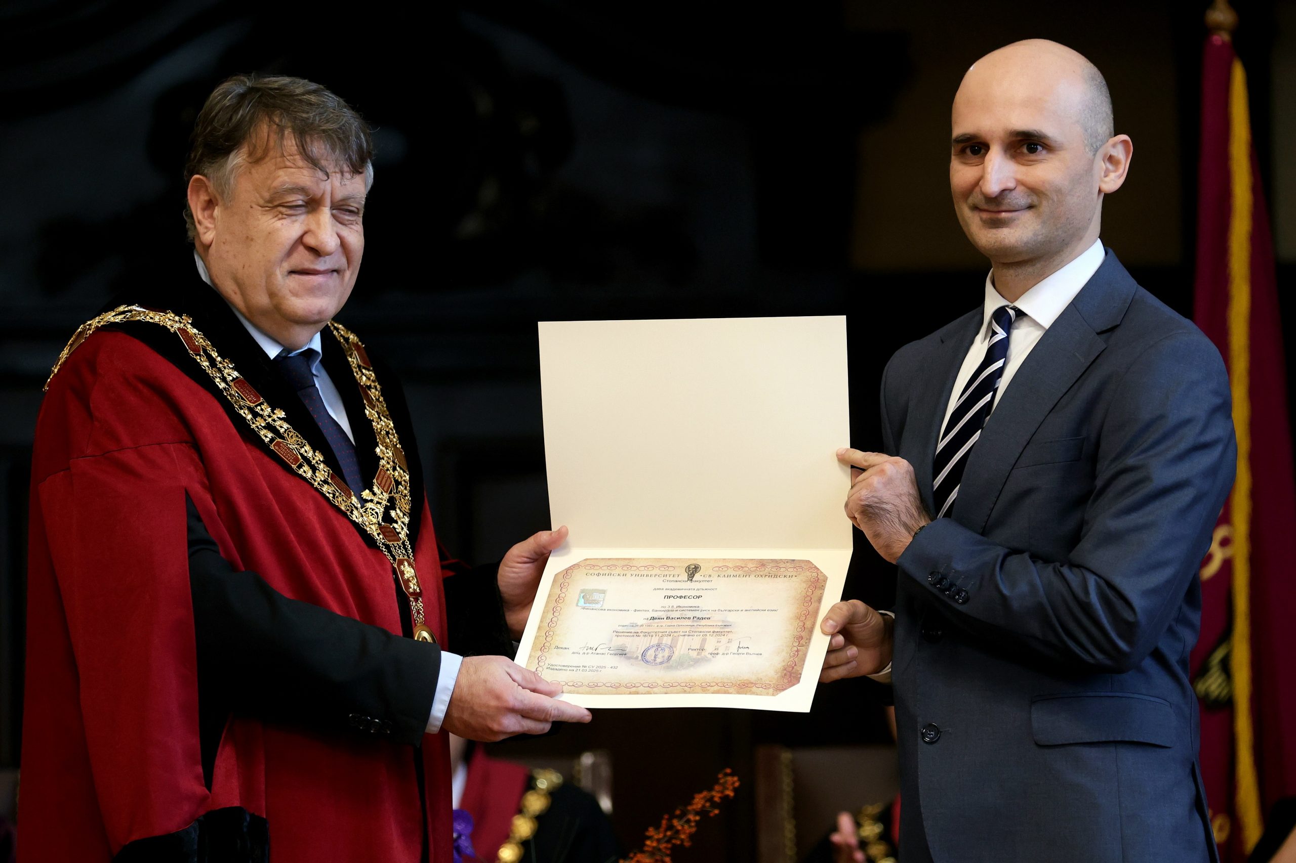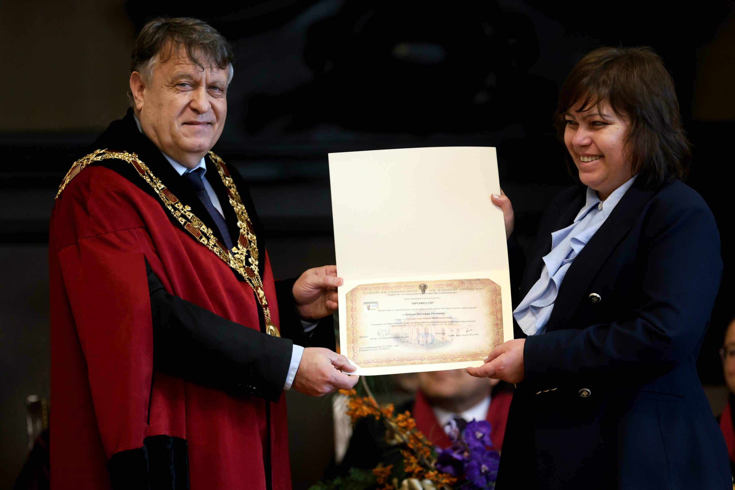 В рамките на деня бяха връчени и удостоверенията на новоизбраните професори за периода от 25 ноември 2024 г. до 25 ноември 2025 г., както и годишните награди „Алма матер“ за учебната 2024/2025 г.