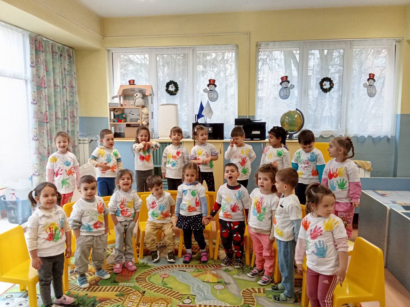 В проекта смело се включват и най-малките – децата от първа група „Многознайко“, които с боички и сръчни отпечатъци от ръчички превръщат белите тениски в истински художествени платна, под ръководството на Валентина Арсова и Светлана Атанасова.