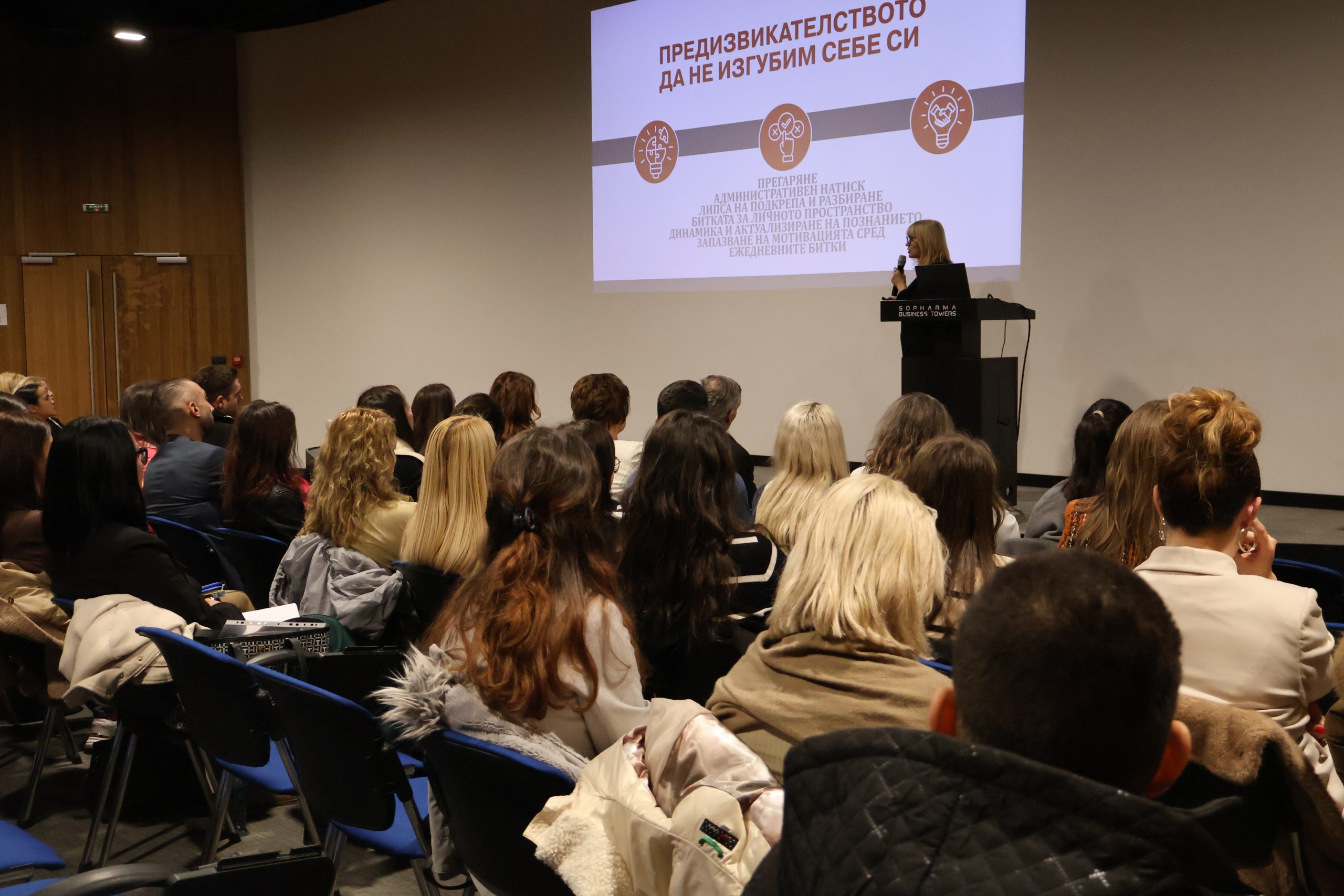 Лекцията пред педагогически специалисти, новоназначени учители и директори на образователни институции от Софийска област,