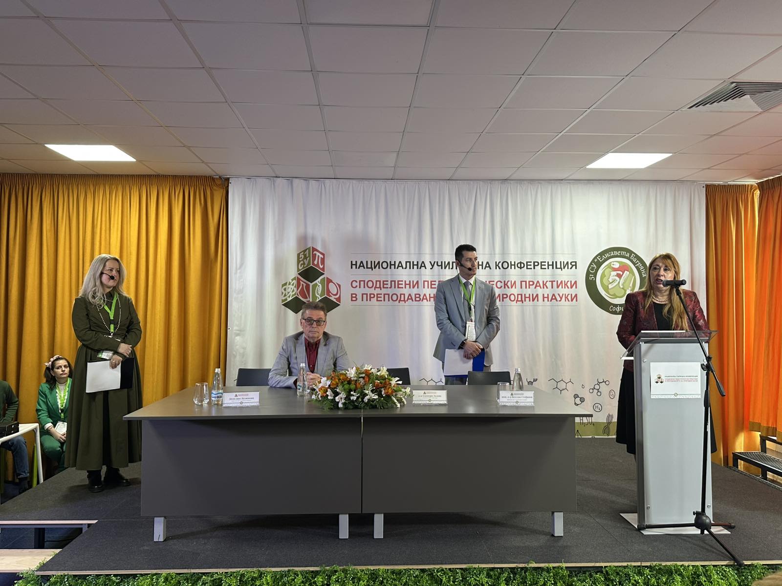 В откриването на националната училищна конференция „Споделени педагогически практики в преподаването на природни науки“ участваха проф. Найден Шиваров – директор на Националния STEM център, Емил Спахийски – директор на Национално издателство за образование и наука „Аз-буки“, Веселка Асенова – началник на РУО – Видин, Виолетка Петкова – главен експерт на СБУ, и други.