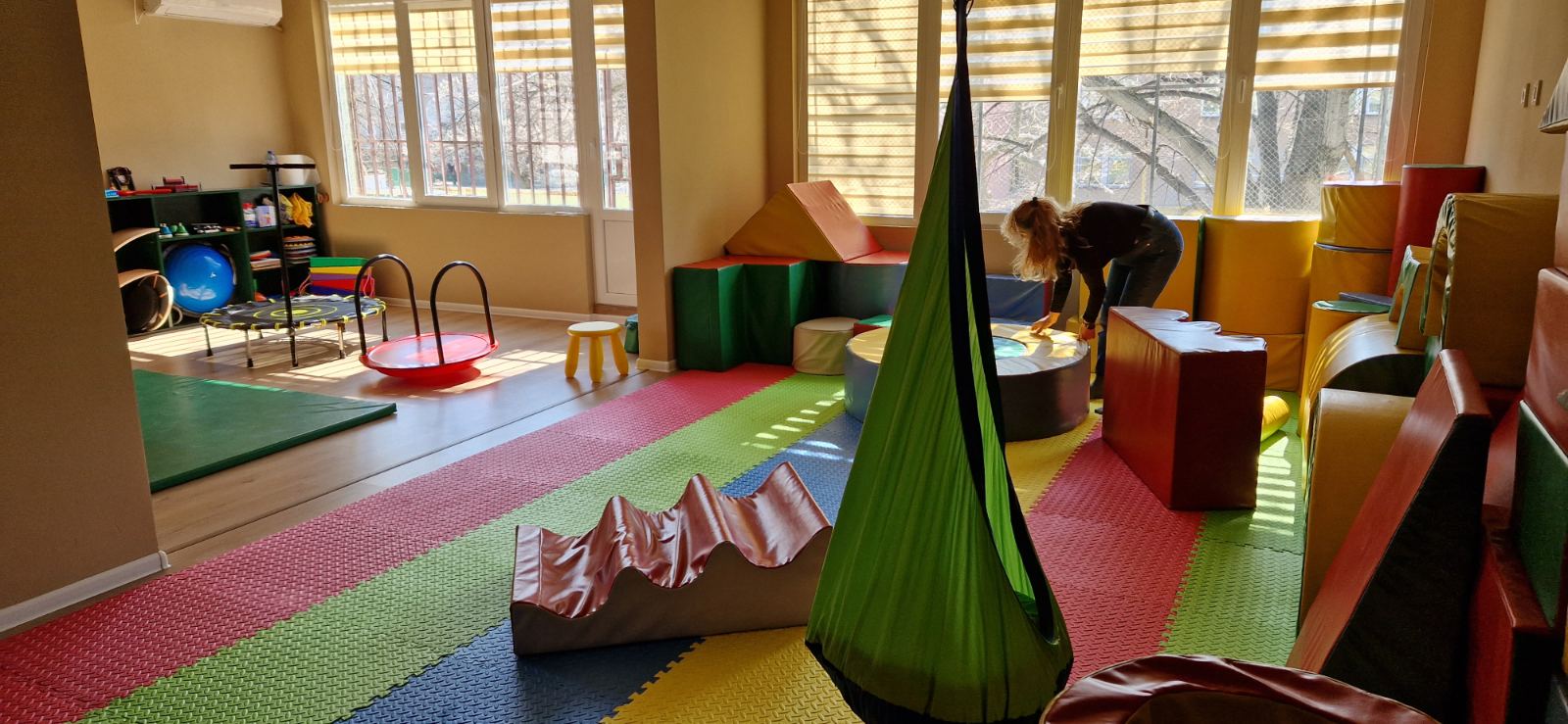 В обновената база са оформени две зали – по психомоторика и за сензорна интеграция, които са обзаведени с нови мебели, уреди, люлки, модули. Изграден е кабинет за учителя с инсталиран брайлов принтер, принтер за топъл печат. Пребазиран е Монтесори кабинетът, като мястото на първия етаж е превърнато в солна стая, която да е в близост до кабинета за физиотерапия. Изградени са кабинети по ерготерапия и за консултация на родителите. Обособено е помещение за артдейности, където ще се водят заниманията по новия проект, по който Регионалният център работи с Националното училище за музикално и танцово изкуство „Добрин Петков“ и с Националната гимназия за сценични и екранни изкуства.
