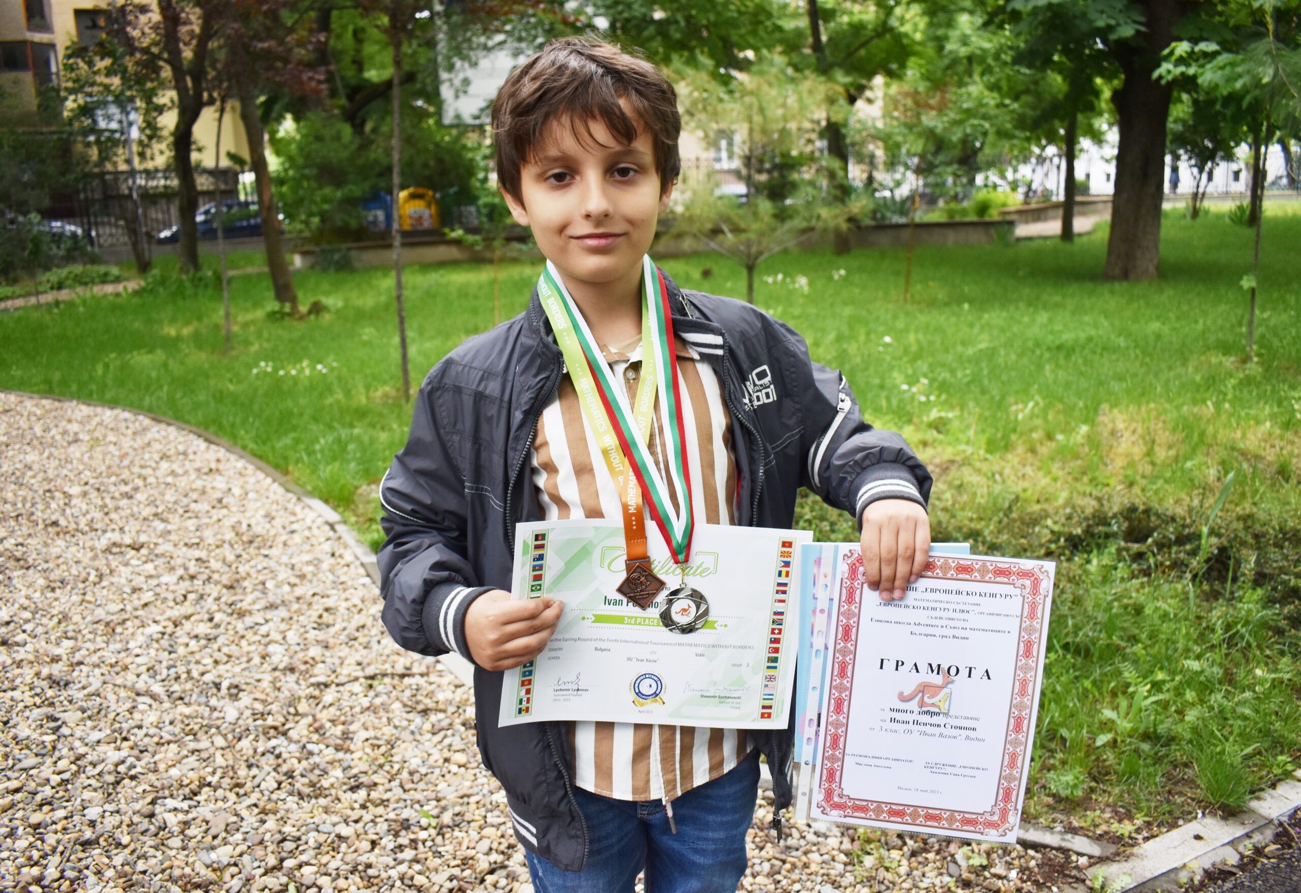 В колекцията от награди момчето има вече златен медал и грамота от турнир по шах, медали от състезания по математика, тенис и физкултура. Днес Иван знае два езика – български и английски, а в момента учи едновременно немски, руски и китайски, споделя майка му. И допълва, че той сам избира заниманията си, дори се налага да го ограничават.