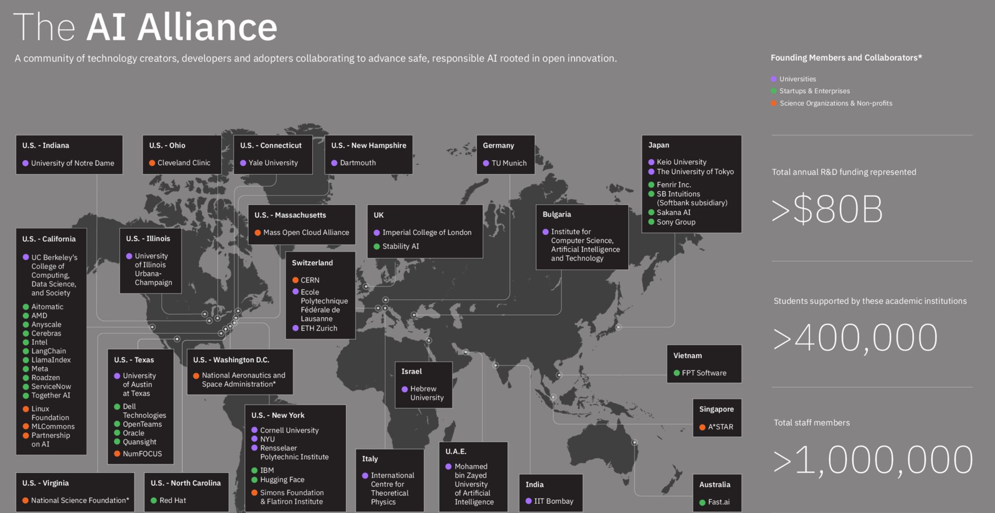Общият брой на членовете към основаването на Алианса е внимателно селектиран и в него се включват едни от най-силните университети и развойни центрове в света. Българският INSAIT записва името си до водещи научни институции като НАСА, ЦЕРН, университетите „Харвард“, „Йейл“, „Бъркли“, ETH – Цюрих, и др.,