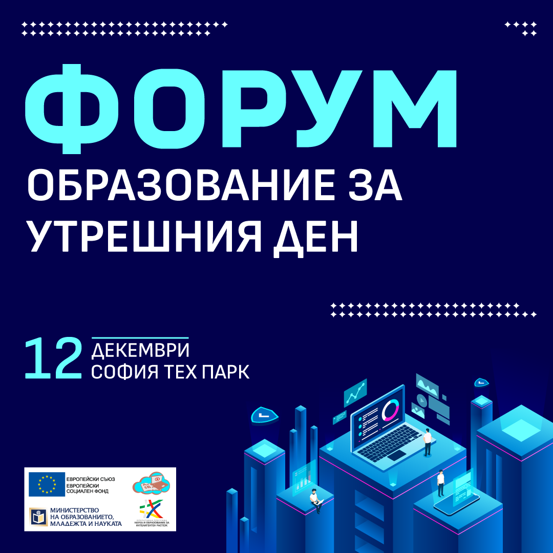 Министерството на образованието и науката организира форум „Образование за утрешния ден“ на 12 декември 2023 г. в „София Тех парк“. Събитието ще бъде открито от министъра на образованието и науката проф. Галин Цоков.