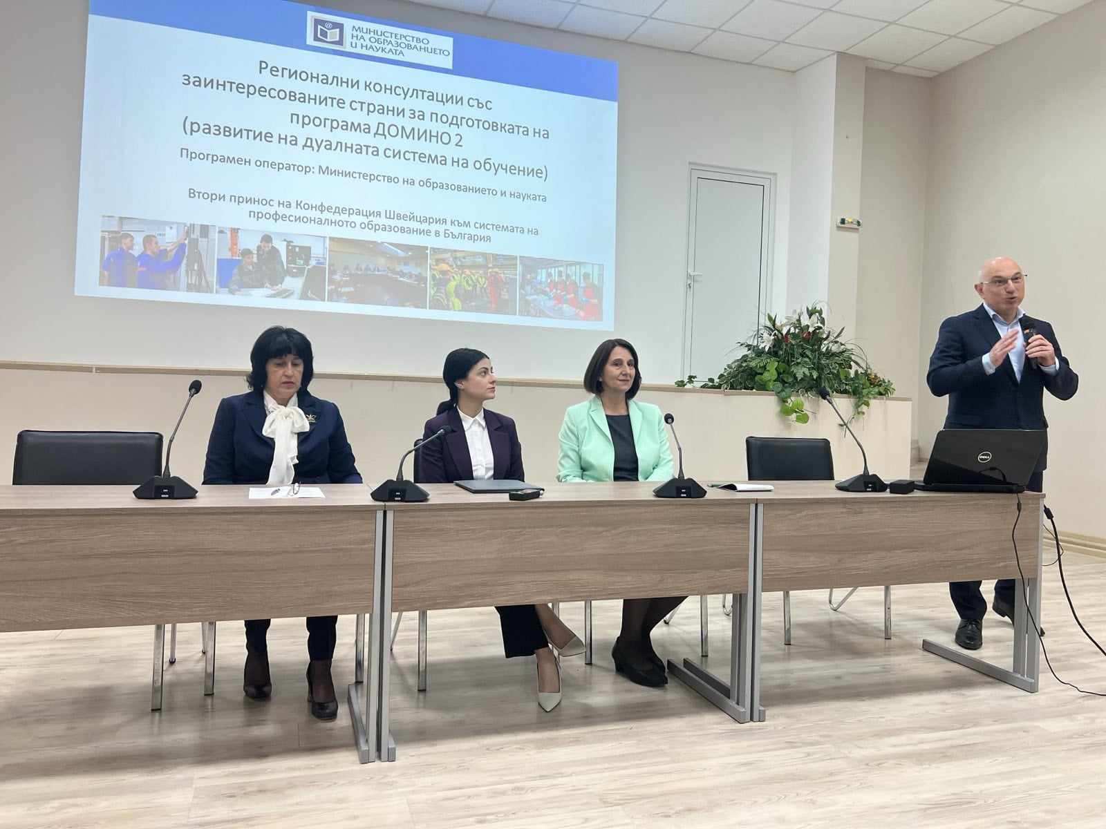 Въвеждането на 15 нови професии с практическо обучение в реална работна среда предвижда вторият етап на програма „ДОМИНО 2“, по който в България за първи път е въведено дуално обучение. Проектът се разработва от Министерството на образованието и науката посредством Оперативна програма „Наука и образование за интелигентен растеж“. В началото на месеца областната администрация – Видин, бе домакин на регионална консултация за подготовката на програма.