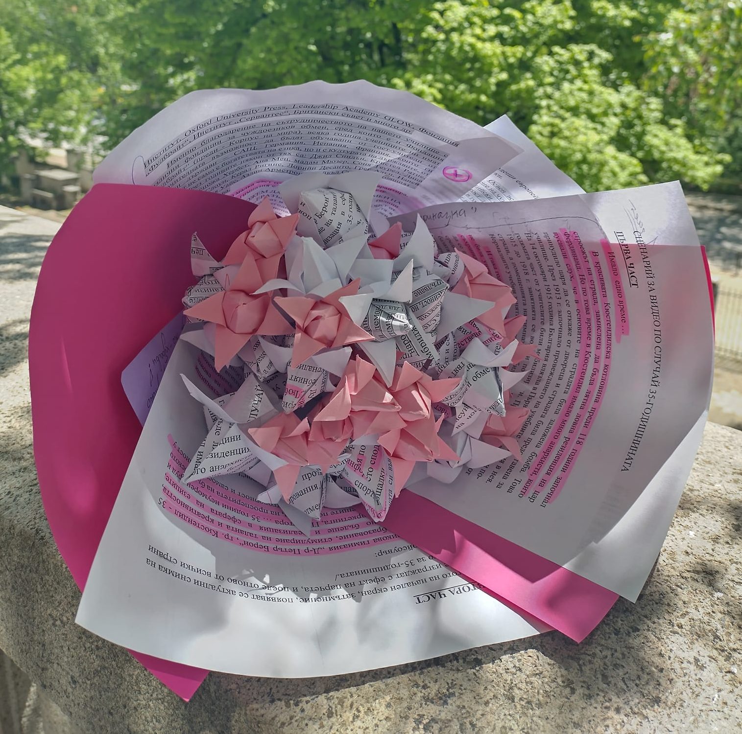 Тя е използвала хартията от сценариите за официалната церемония по случай празника, за да ѝ вдъхне нов живот и да остави един траен спомен за обичаните си учители.