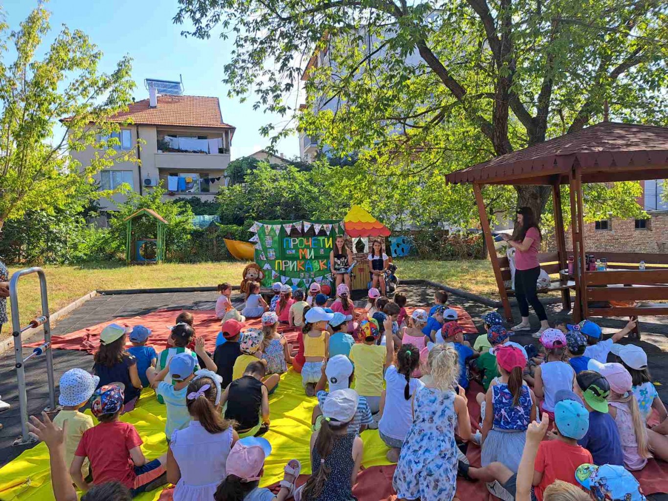 Книжките с български народни приказки са осигурени от детските градини и съобразени с учебната програма за съответната възрастова група, а четенията се провеждат под ръководството на учител настойник на открито – в сянката на някое дърво или беседка в двора на детското заведение.
