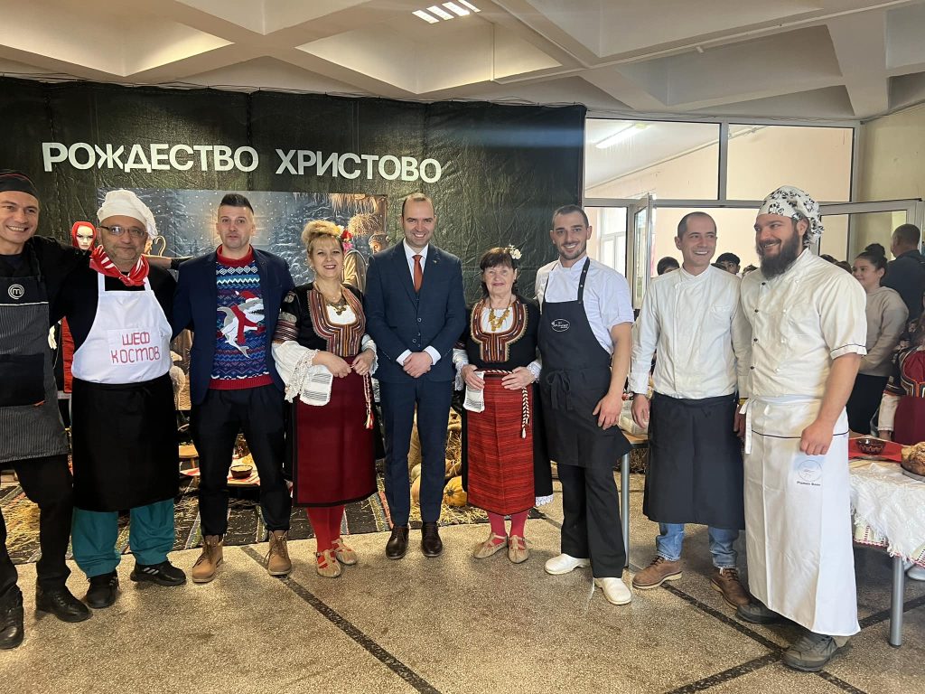 Гости на Коледния кулинарен базар бяха и част от женската група към Народно читалище „Съгласие 2007“ – с. Жабокрът, които са вписани в Националната представителна листа на елементи на културното нематериално наследство. Те почерпиха с кюстендилски зелник и пожелаха децата да се включат активно в приготвянето на кулинарния шедьовър, за да могат традициите по месене на зелник да се предават от поколение на поколение.