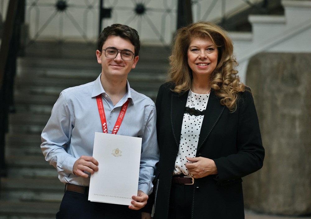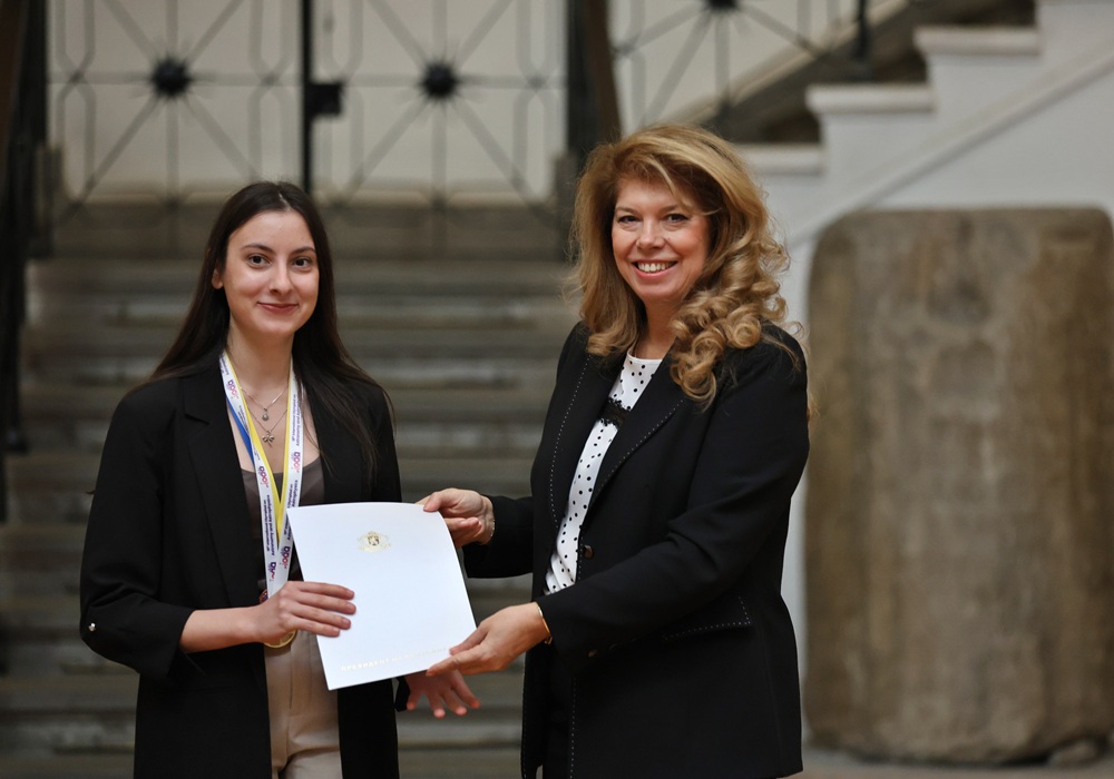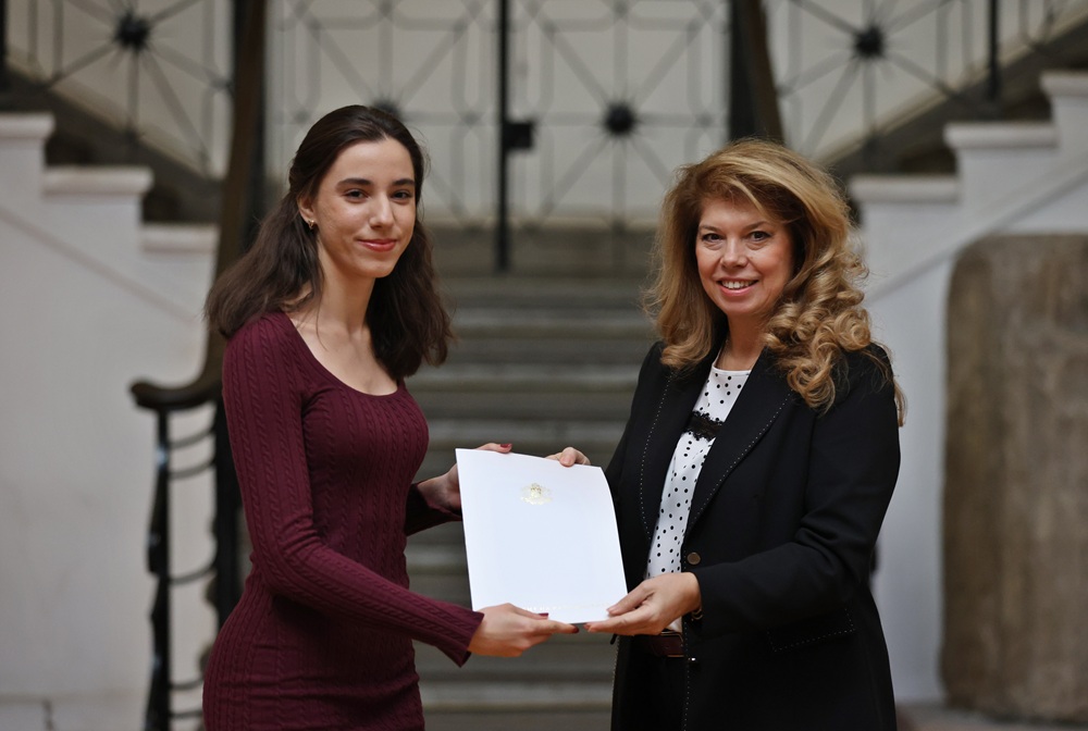 Осемте златни медалисти от международни олимпиади по науки получиха грамотите си от вицепрезидента Илияна Йотова.