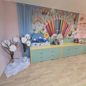 След това децата отиват в тематичните центрове –образователни пространства, специално подредени от медицинските сестри за конкретната тема. Там малчуганите играят различни игри или извършват различни дейности – апликират, рисуват и много други.