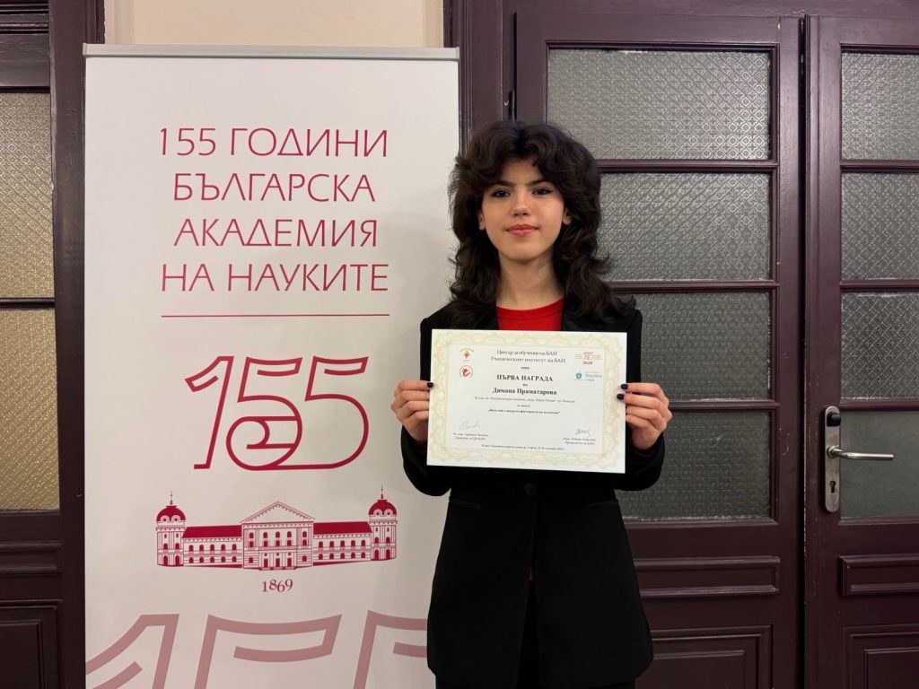 Бъдещата дванайсетокласничка от Математическата гимназия „Акад. Кирил Попов“ в Пловдив Димана Праматарова се нареди в топ 5 на бис-презентациите в тазгодишното издание на най-престижната Международна лятна изследователска програма в света – RSI’25 (Research Science Institute), в Масачузетския технологичен институт (MIT) в Бостън, САЩ.