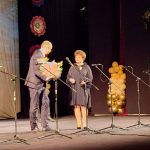 Началникът на РУО Валентина Камалева връчва плакета на директора Павел Чепов