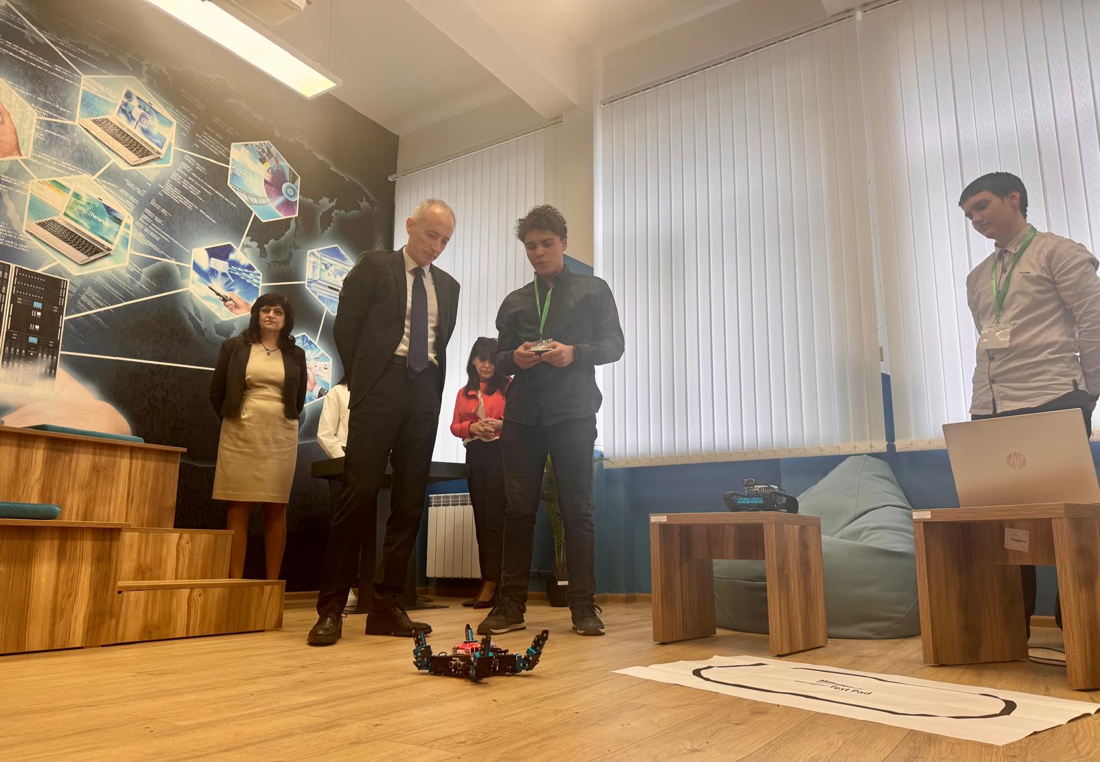 Министър Вълчев подчерта, че образователните институции имат нужда от постоянна подкрепа не само в STEM направленията, но и за обновяване на останалите учебни пространства – кабинетите по обществени и хуманитарни науки, както и класните стаи в начален и основен етап.