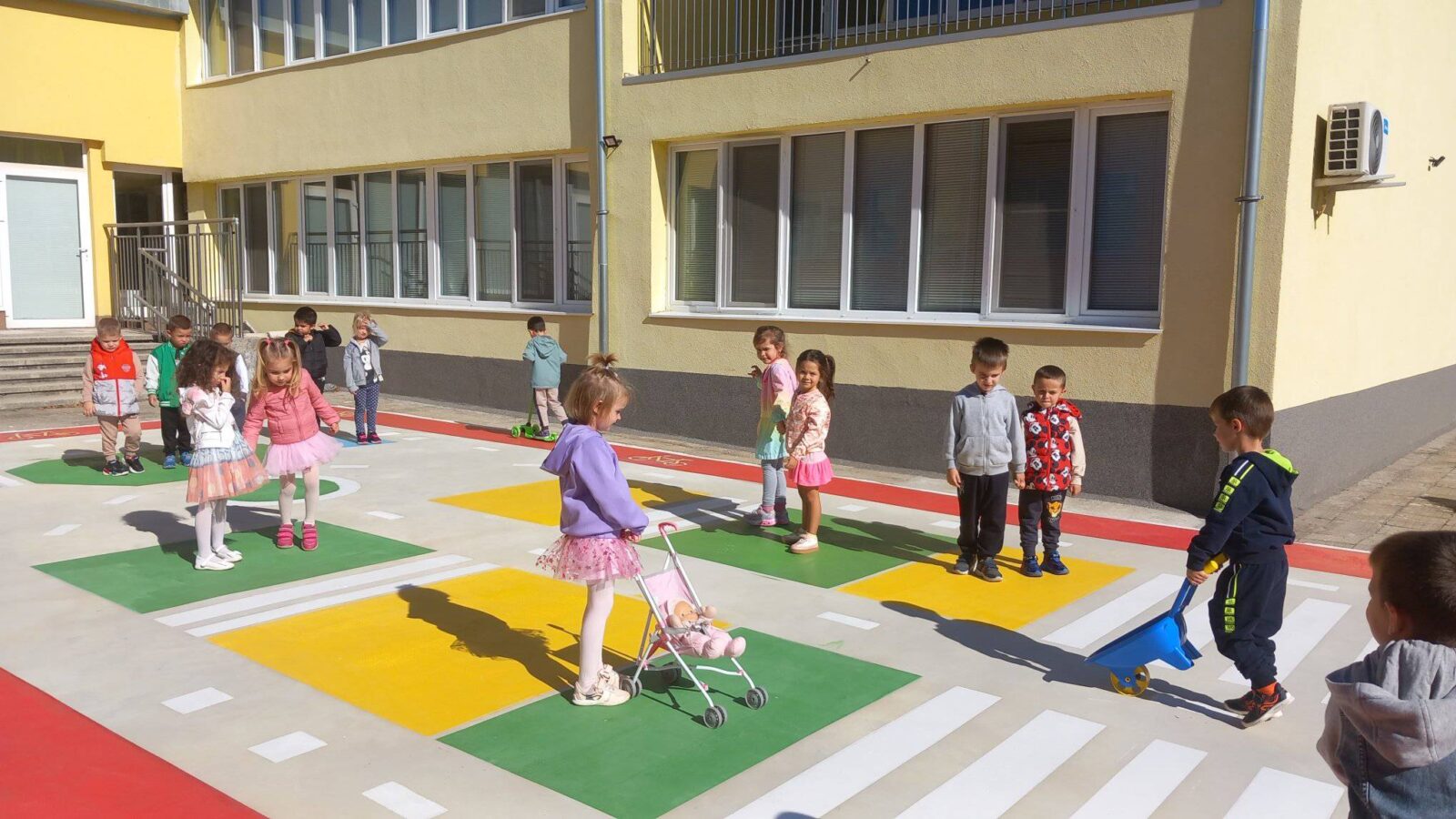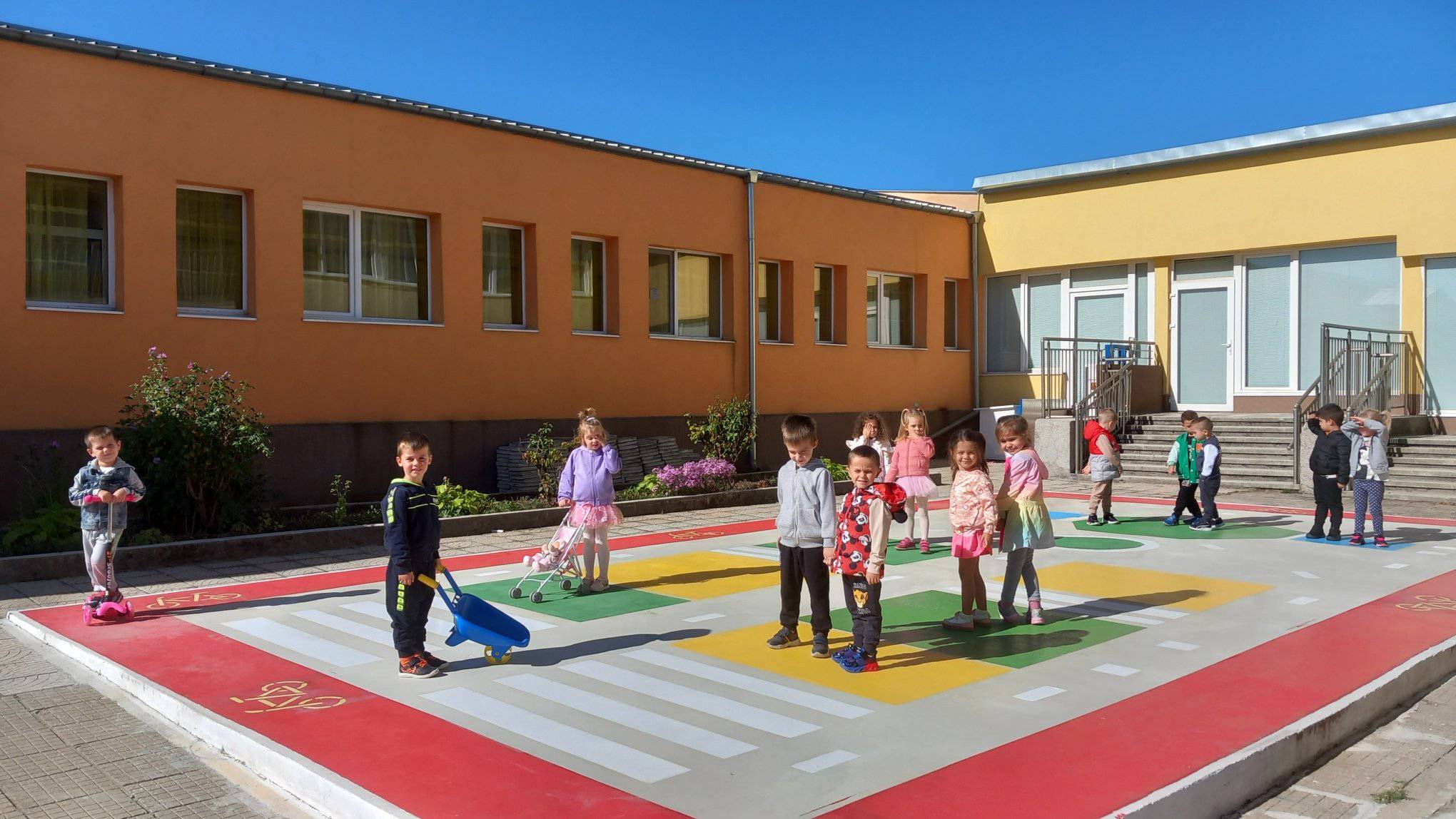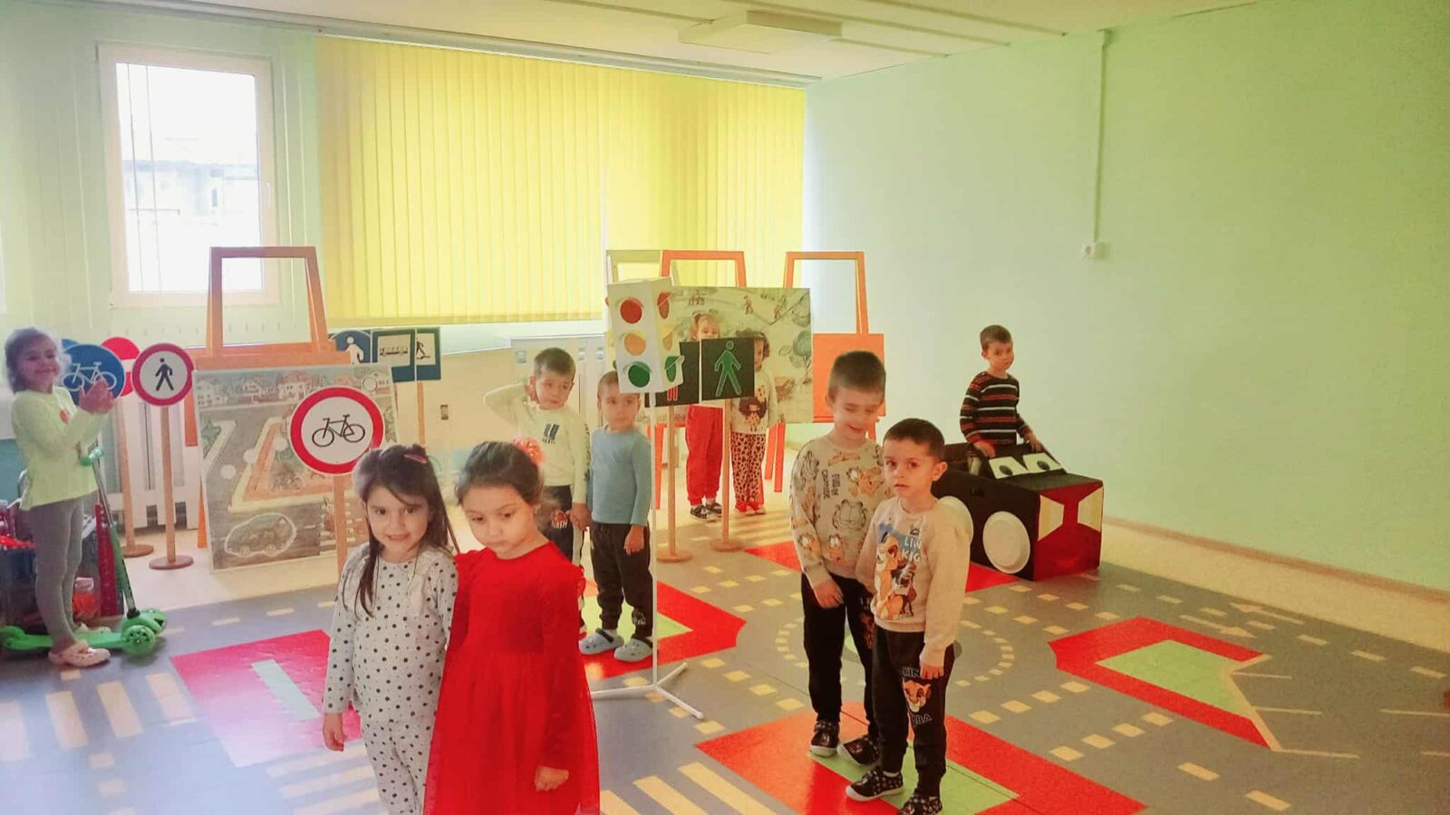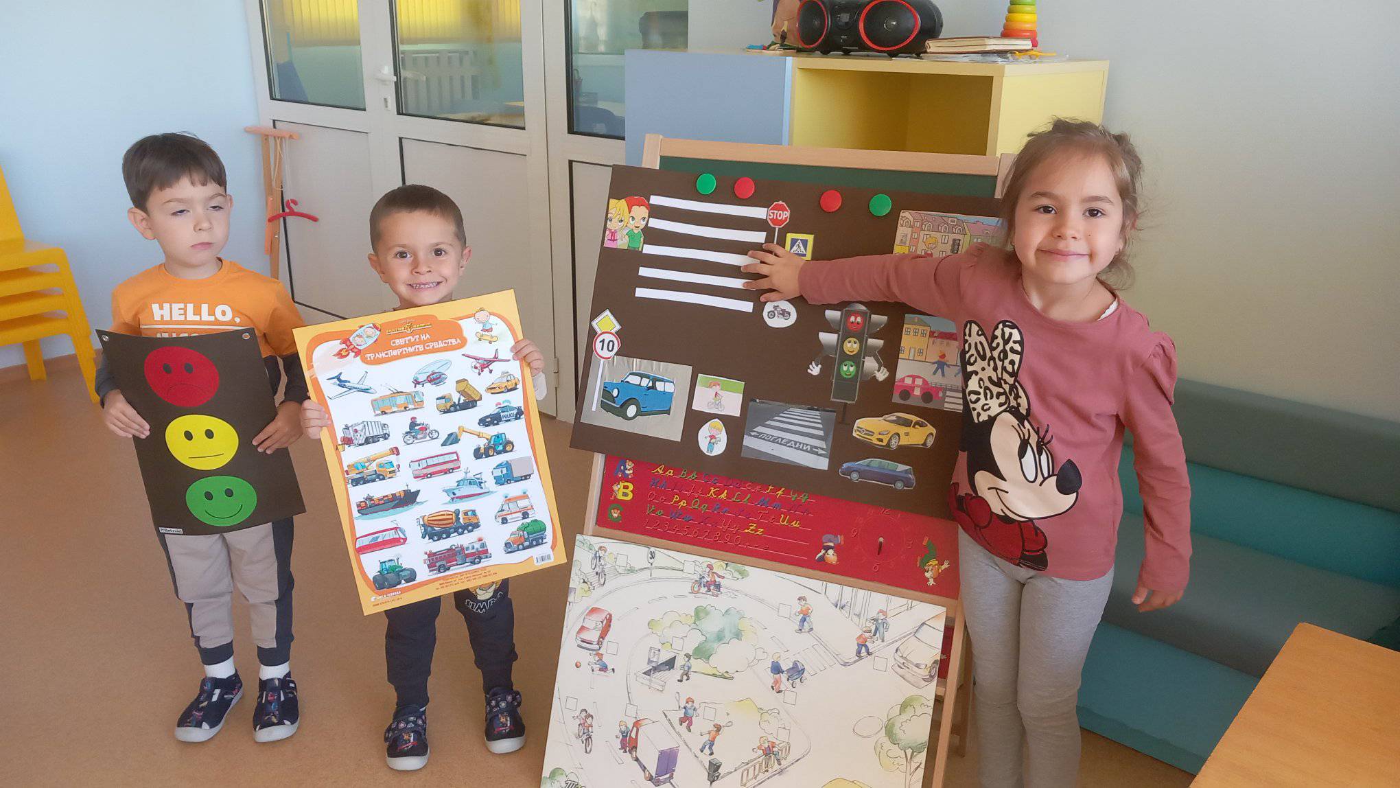 Проиграват се ситуации от реалния живот, а децата усвояват с интерес знания и умения и затвърдяват практически усвоените знания за правилата на пътя.