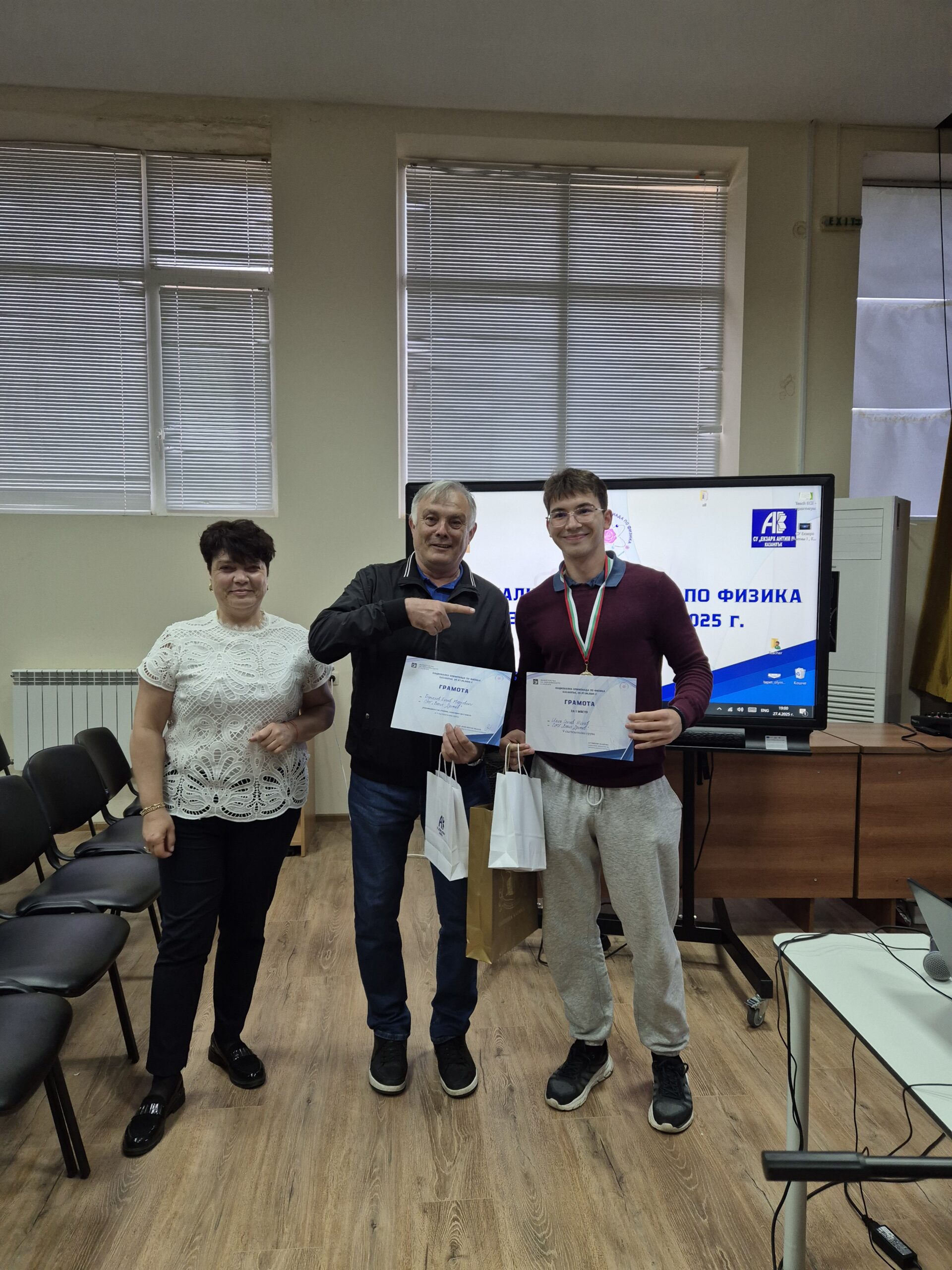 Първите десет класирани ученици от експерименталната част получиха възможност да участват на IX европейска олимпиада по физика, чийто домакин тази година е НПМГ „Акад. Любомир Чакалов“. От най-добрите участници, след подбор, ще бъде сформиран и националният ни отбор, който ще представлява страната на Международната олимпиада по физика в Париж.
