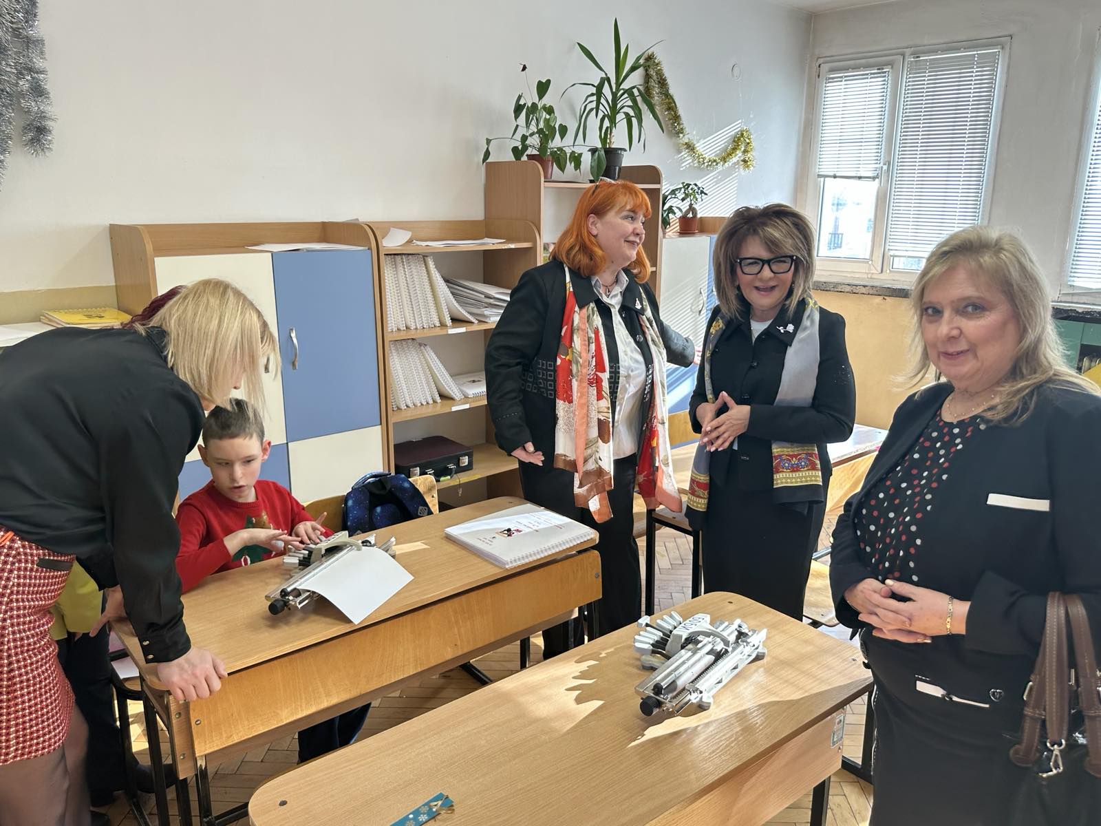 Показана бе образователната и терапевтичната база на училището, включително сензорната зала, кабинета по полезни умения, залата за ерготерапия, както и специализирани кабинети и библиотеката. Заместник-министър Михалевска наблюдава и брайлово писане и четене от ученик с нарушено зрение.