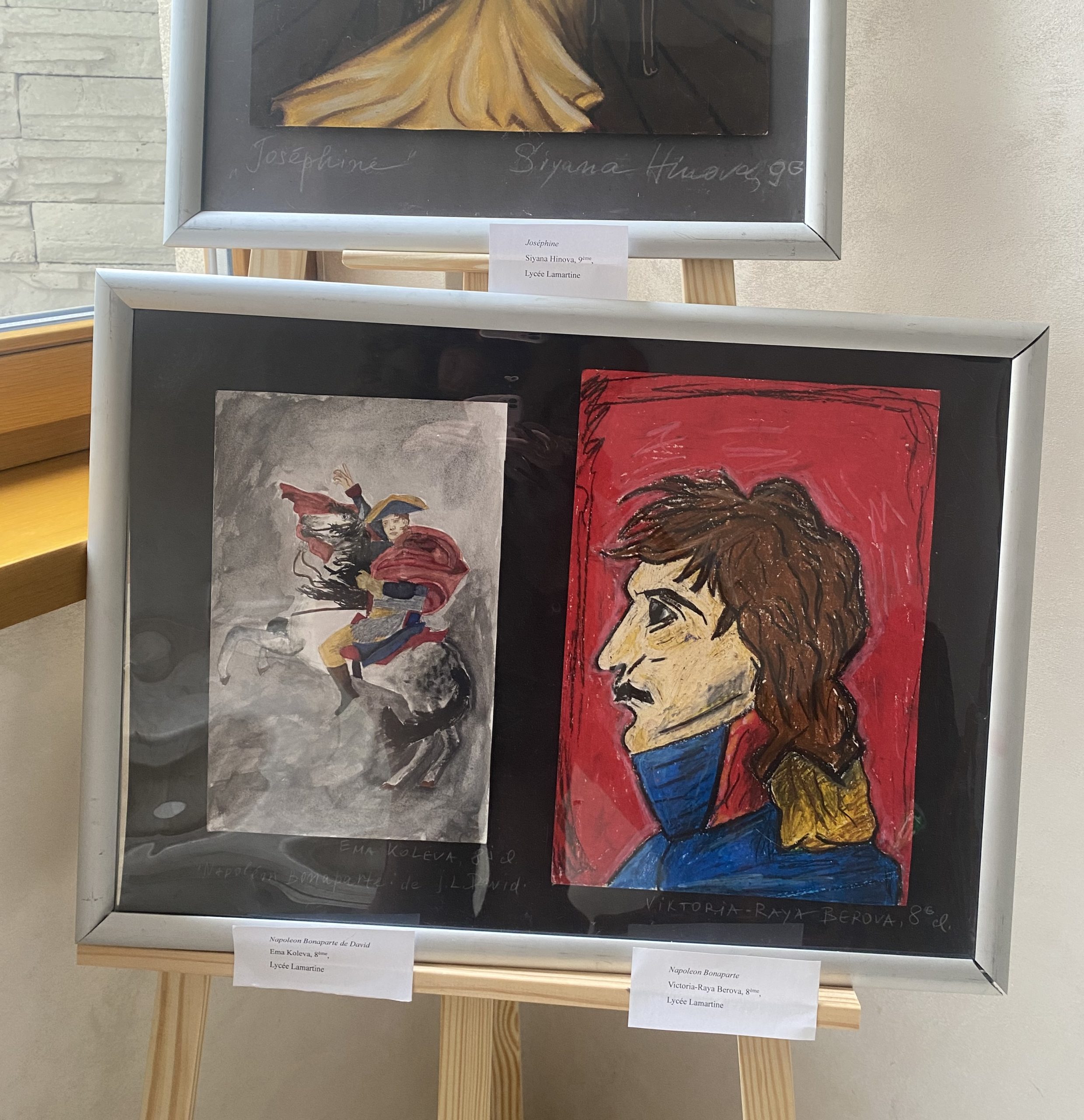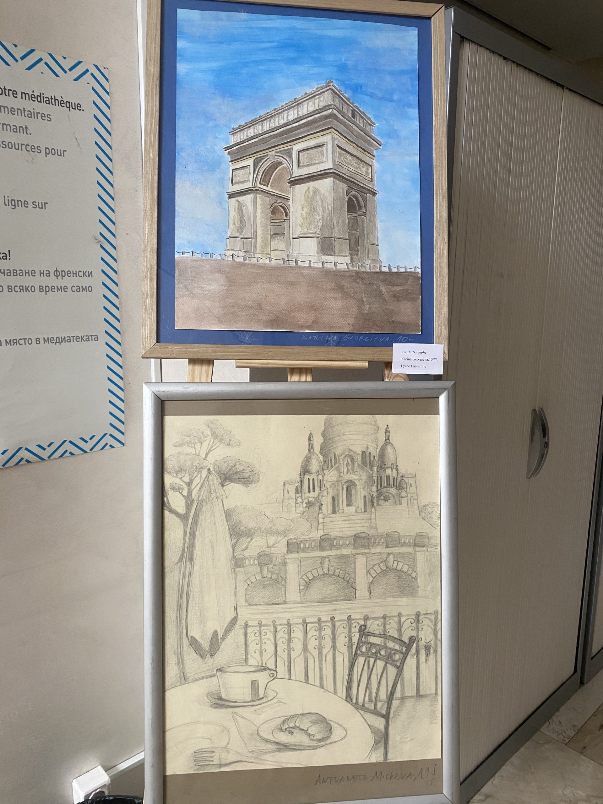 Учениците от VIII до XII клас под ръководството на своя неуморим преподавател по изобразително изкуство Светлана Тодорова са се вдъхновили от историята и културата на Франция и са пресъздали в рисунките си емблематични за страната хора, места и сгради. Осмокласничките Ема Колева и Виктория-Рая Берова са нарисували Наполеон Бонапарт. Антон Черкезов от XII клас е направил невероятен портрет на Едит Пиаф.