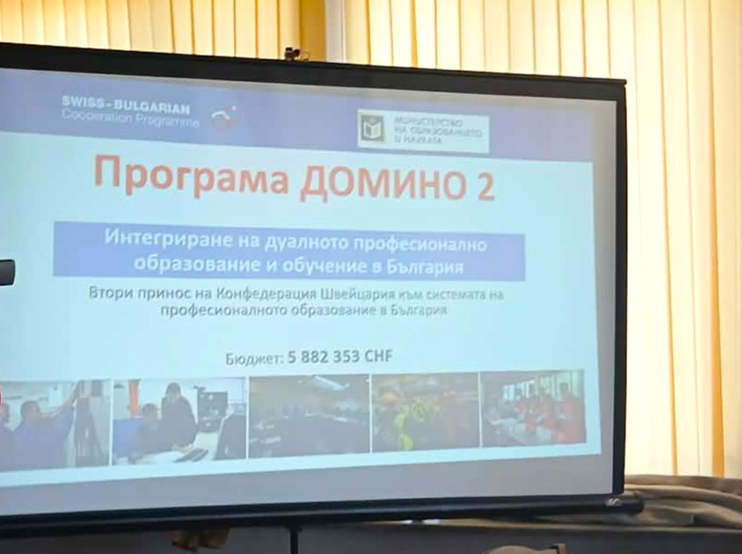 Срещата се организира от Българо-швейцарската търговска камара и е посветена на началото на програма „ДОМИНО 2“, уточнява директорът на Професионалната гимназия „Проф. д-р Асен Златаров“ във Видин Мариета Георгиева. Инициативата надгражда постигнатото в първия етап, който през 2015 г. постави основите на дуалното обучение в България.