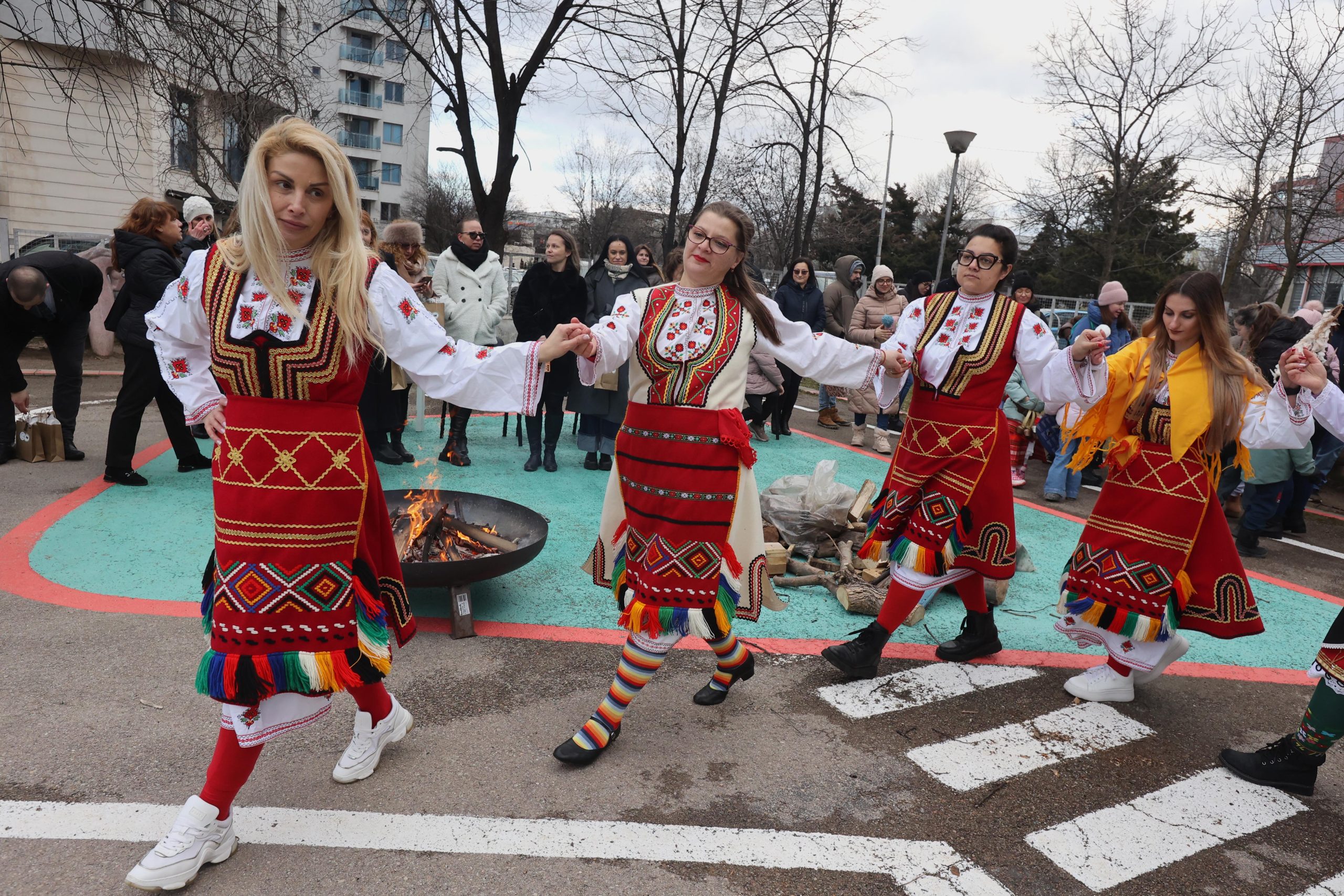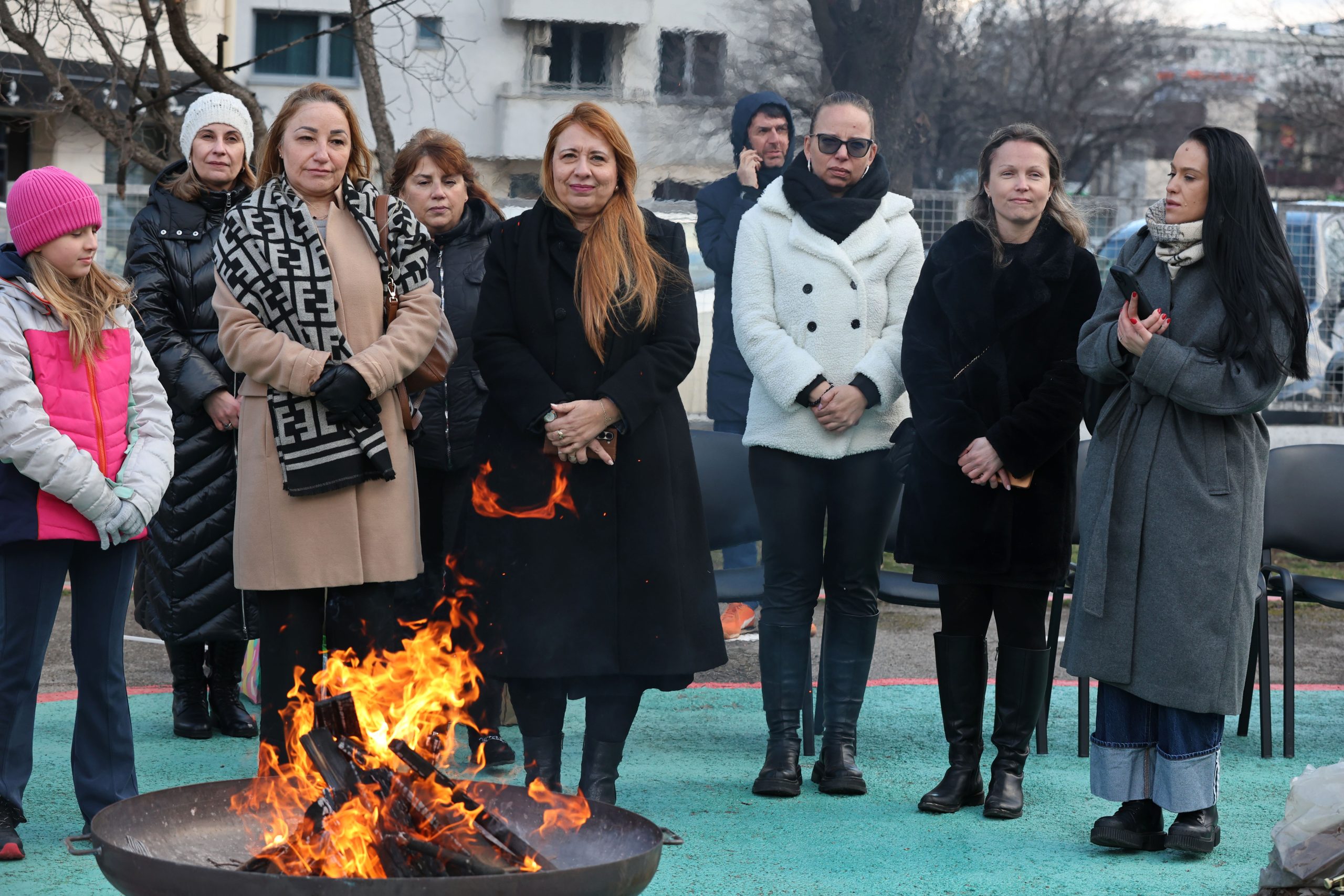 Децата от IVГ група с ръководители Александра Апостолова и Евгения Николова направиха кратка възстановка на празника със символиката на даването и искането на прошка. След това всички спазиха традицията и прескочиха специално създаден за възстановката огън. А около истинския огън в средата на сградата учителите, начело с директора Калина Иванова, изиграха хоро и си пожелаха много здрава и спорна година, изпълнена с повече добрини.