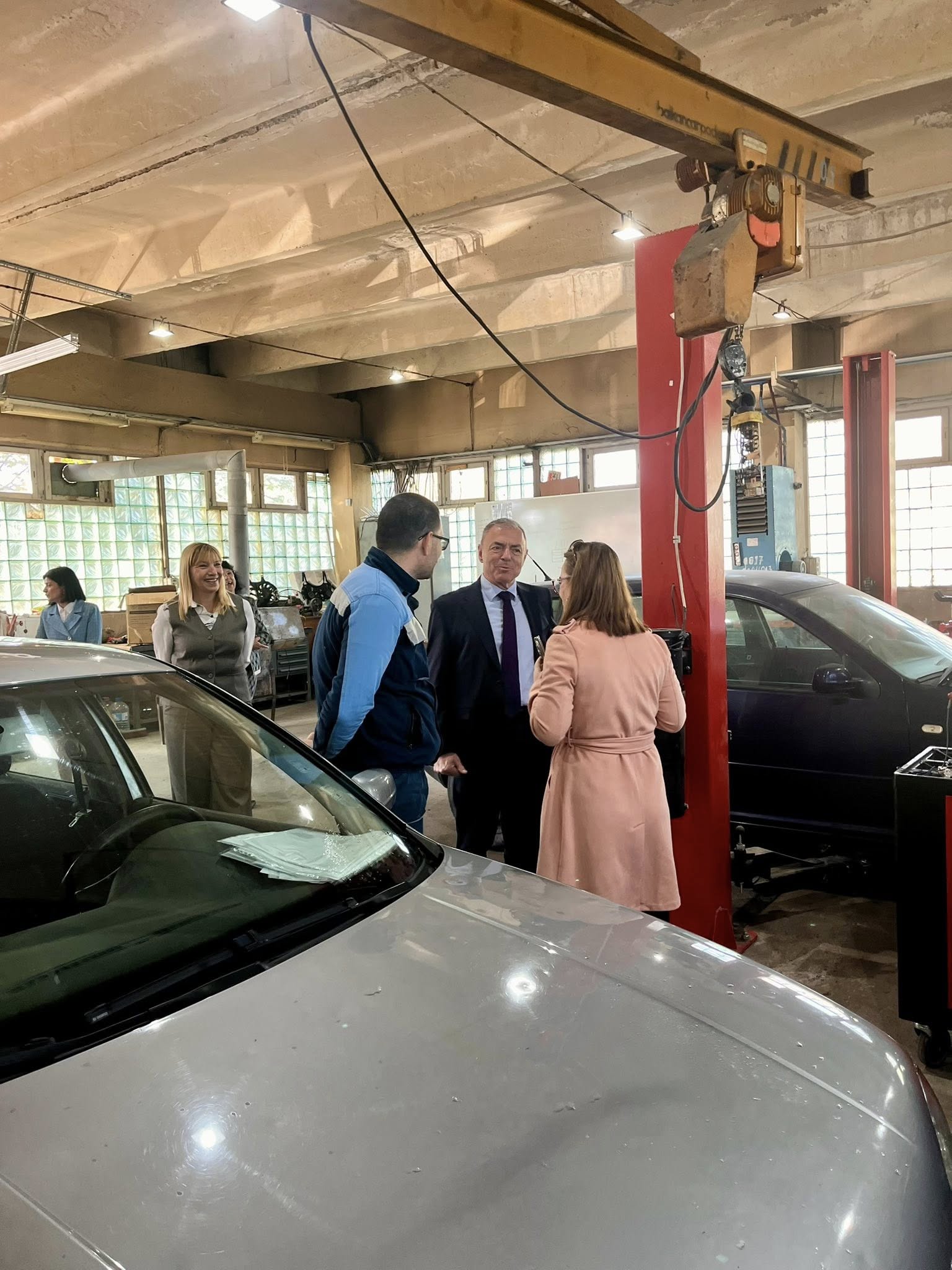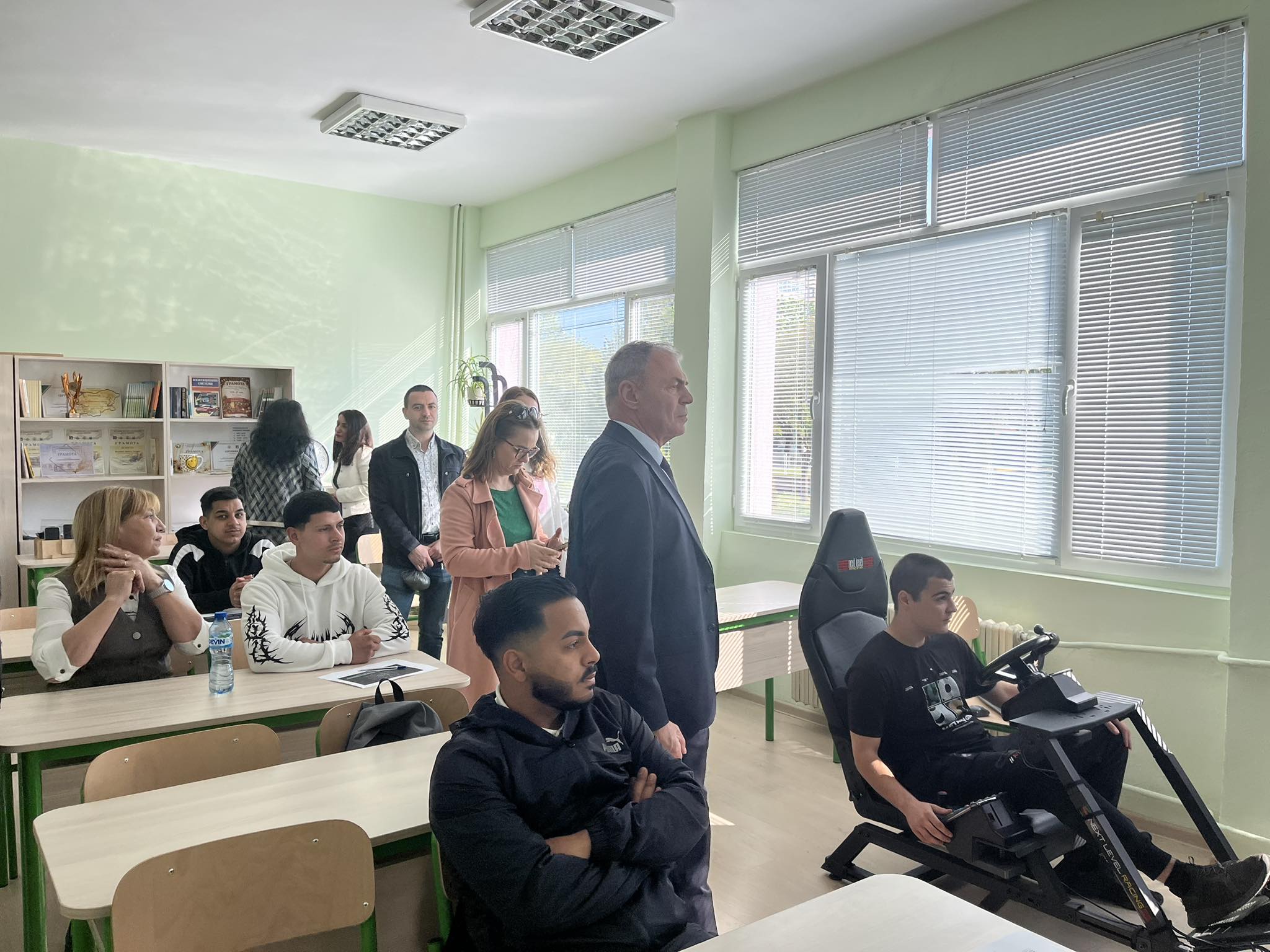 В рамките на визитата си проф. Игнатов се запозна с учебната база, модернизираните кабинети и възможностите за практическо обучение на учениците, включително в специализираните кабинети по автотранспортна техника.
