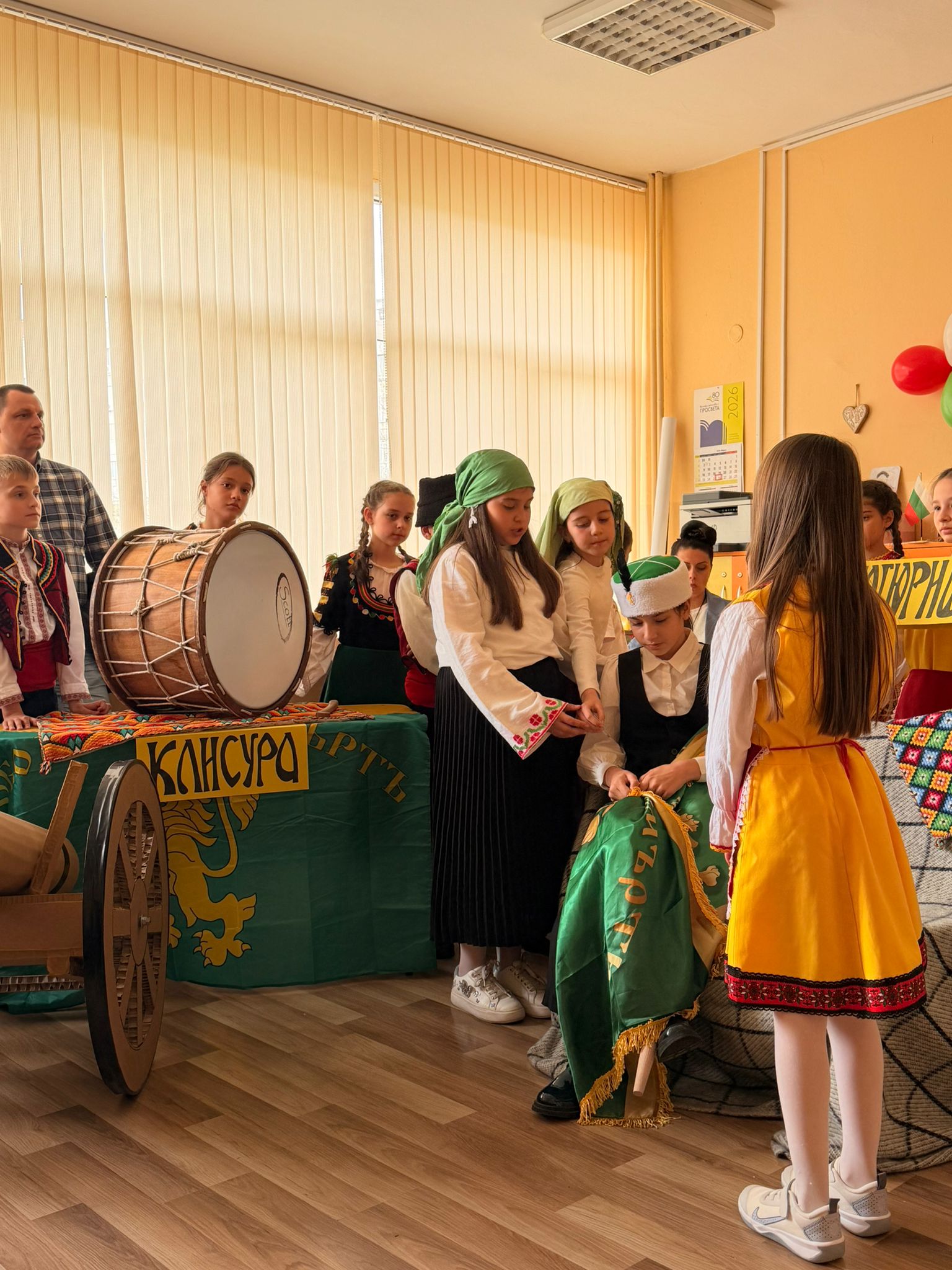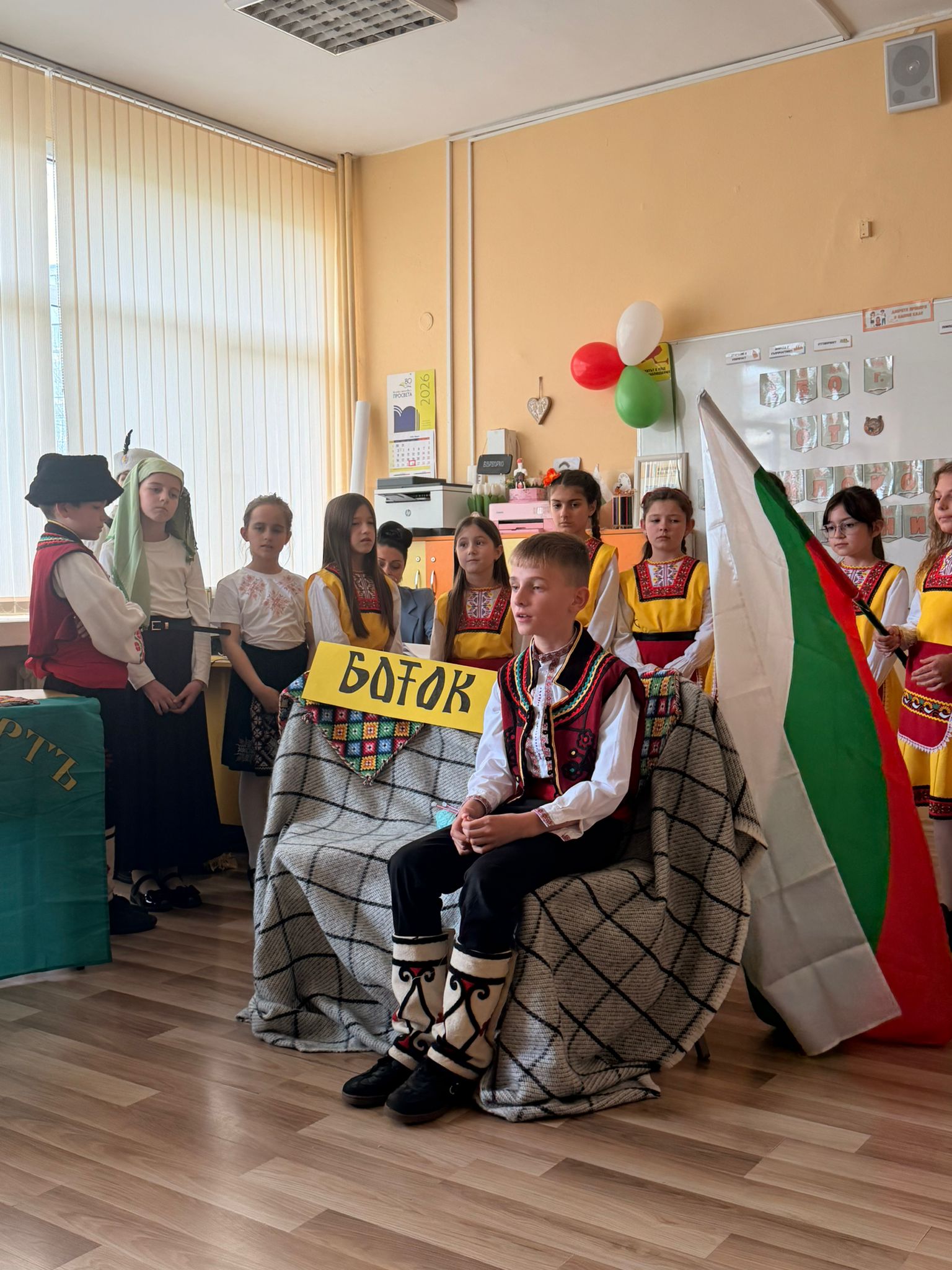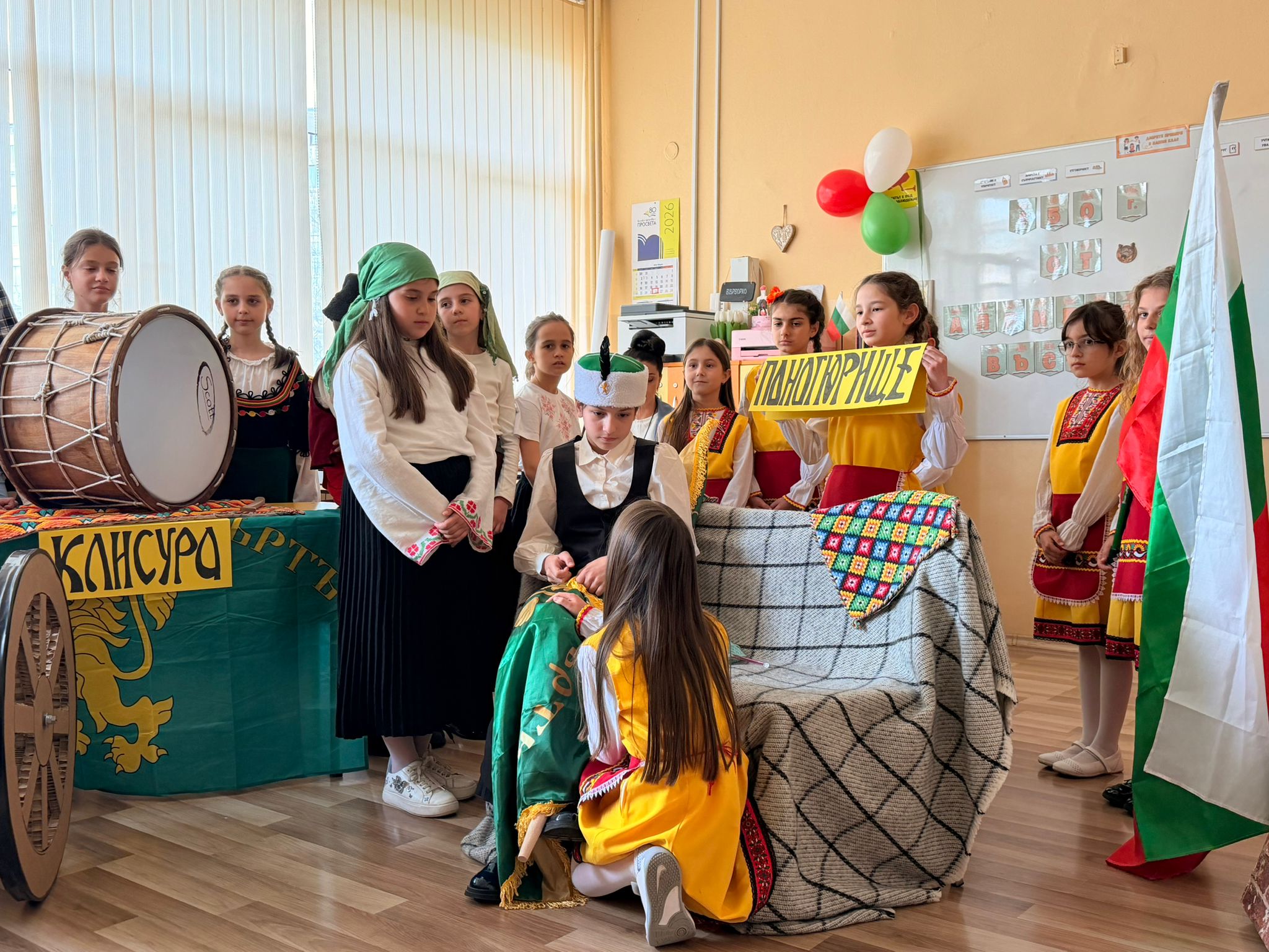 Младите таланти изпълняват възрожденски песни, сред които „Къде си вярна ти, любов народна“ и „Кой уши байряка“, и пресъздават образи на бележити възрожденци. Част от програмата включва и възстановка на извезването на знамето от Райна Княгиня.