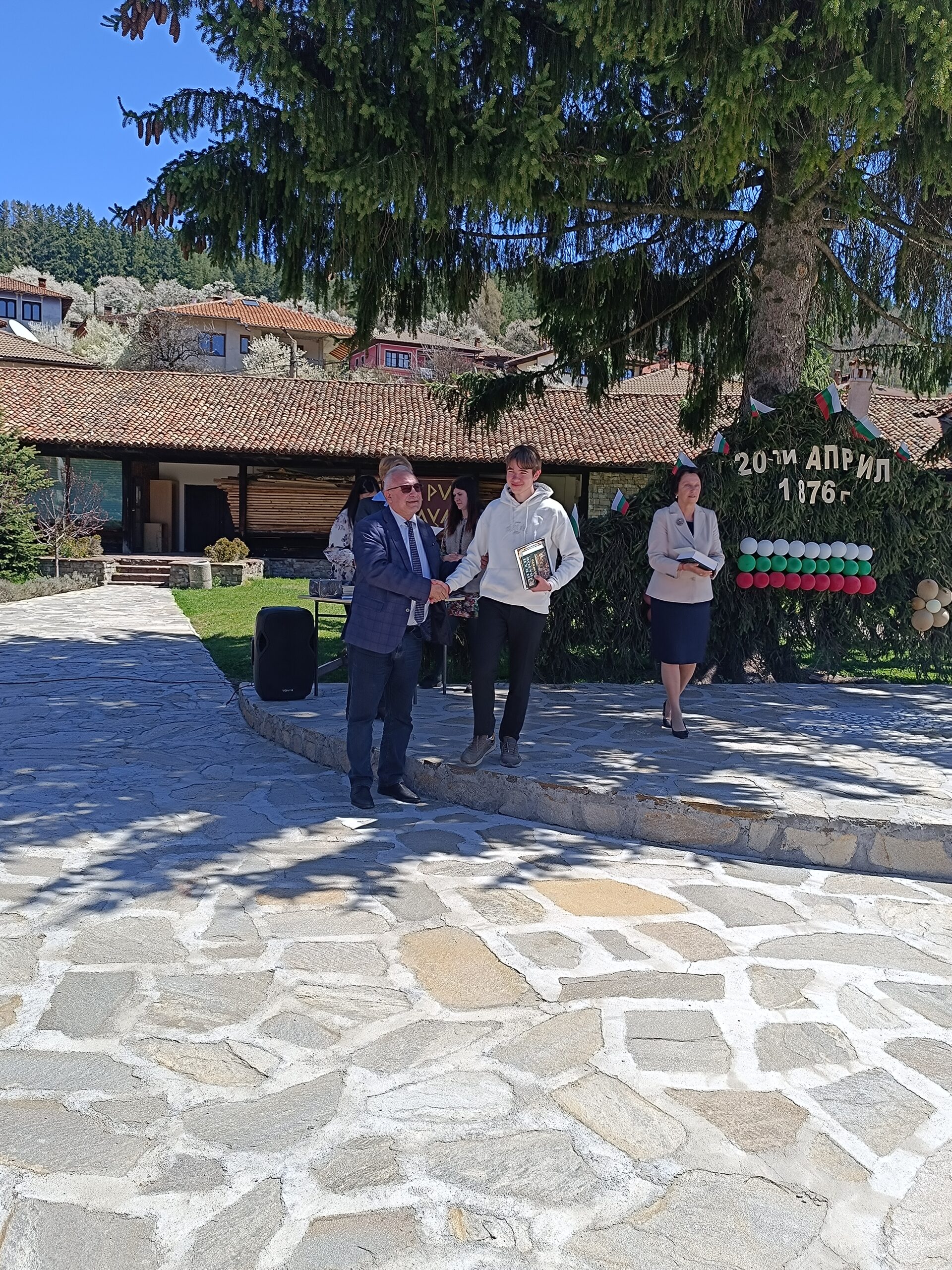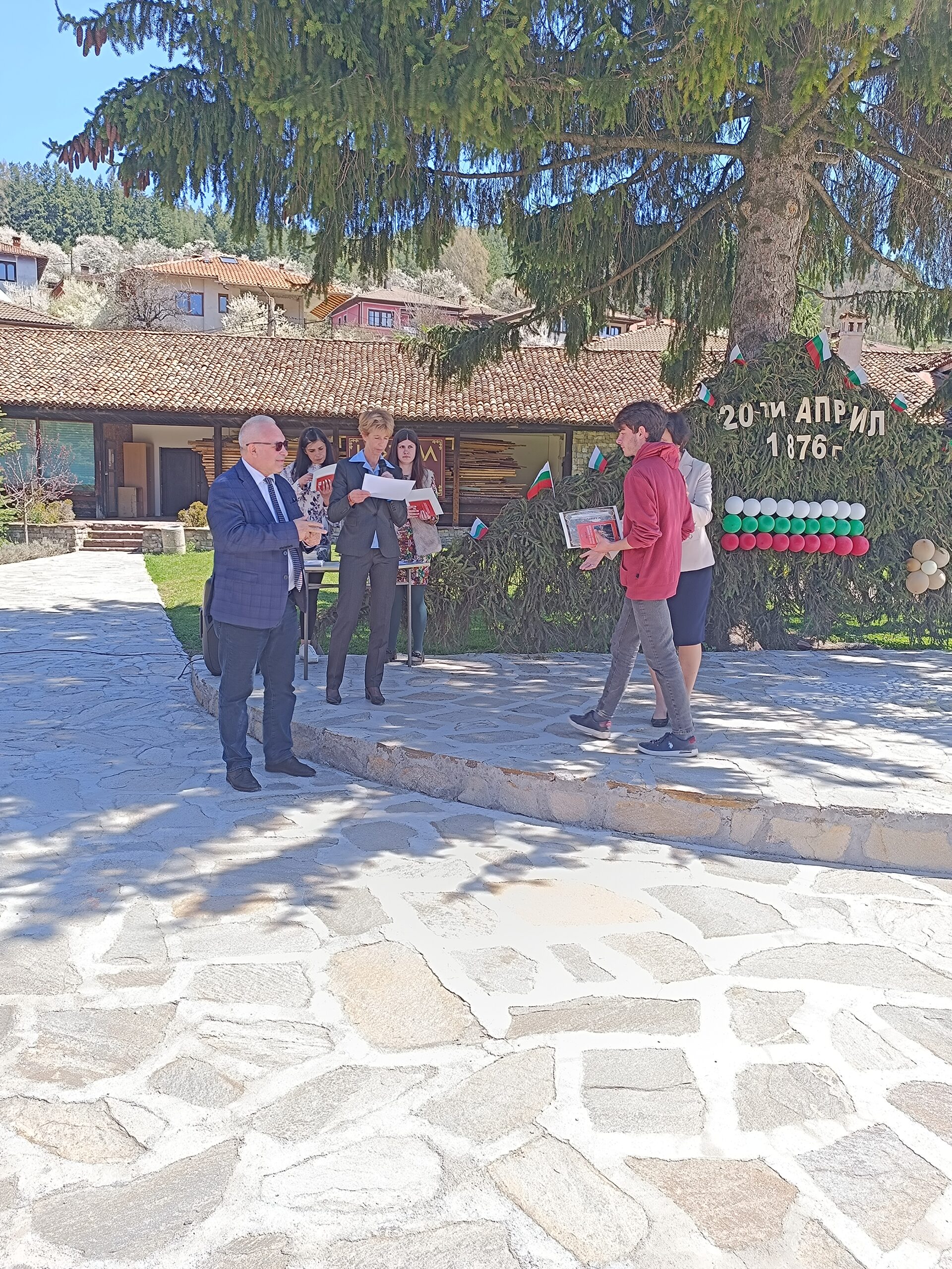 Тържествената церемония по награждаването се провежда в двора на СУ „Любен Каравелов“ – Копривщица, което е домакин на олимпиадата.