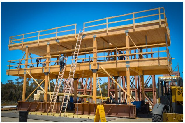 Figure 1. Earthquake shake table tests of a 20-story earthquake-resistant timber building at UC San Diego (URL-1)