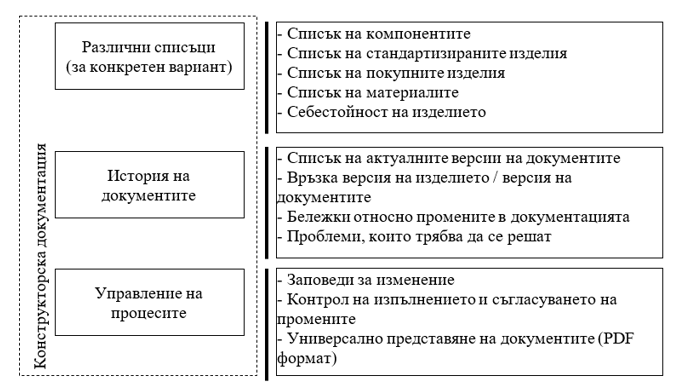 Управлението на конструкторските документи, пряко свързани с организацията на производството, е илюстрирано на фиг. 2. Обособени са три групи:
